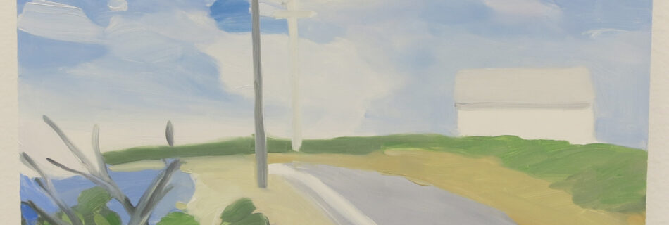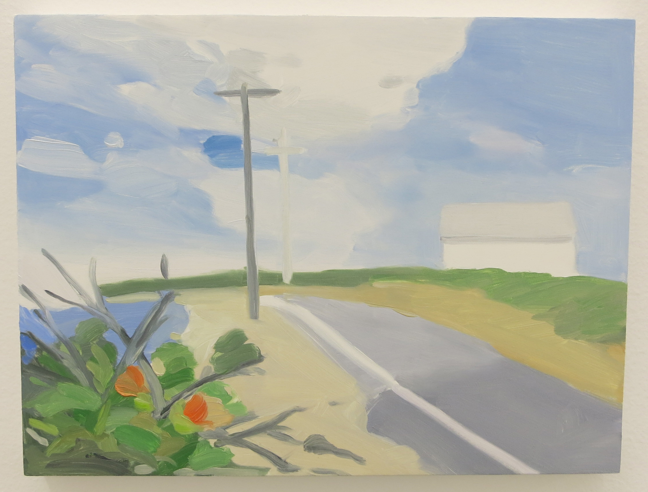 Fleeting clouds, rapidly sloping greenery and a mini-explosion of wind-whipped shrubbery in this coastal scene by Maureen Gallace keep the eye moving around the spare landscape. Perfectly timed to generate nostalgia for disappearing fair weather days, Gallace’s latest solo show at Chelsea’s 303 Gallery speaks the language of memory and longing. (Through Oct 31st). Maureen Gallace, Surf Road, oil on panel, 9 x 12 inches, 2015.