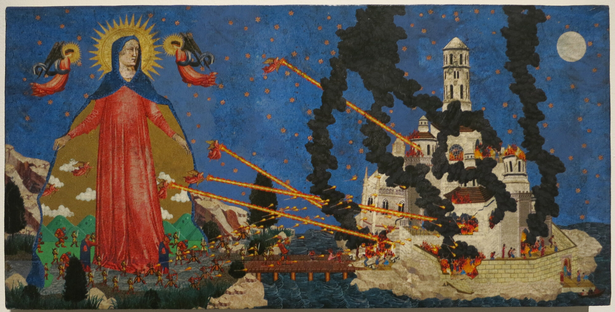 Toledo-based artist Dan Hernandez combines scenes from early Renaissance paintings with 80s video game imagery to humorous effect at Kim Foster Gallery in Chelsea. Inspired by the flat sense of space and major size discrepancies between the characters in both genres, Hernandez creates epic battles between characters that stretch the idea of supernatural powers. (Through Jan 16th)