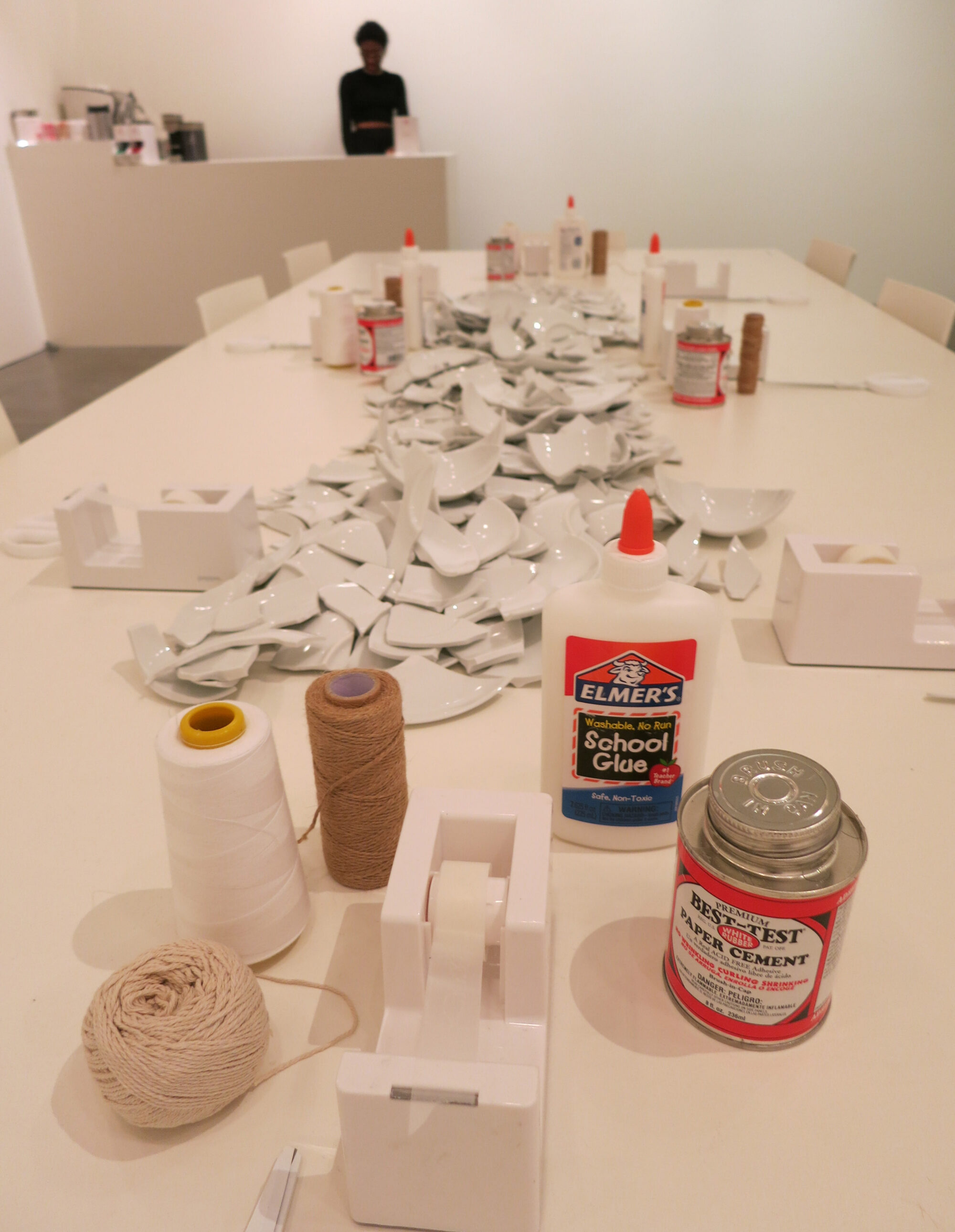 Yoko Ono, Mend Piece (Andrea Rosen Gallery, New York, 2015/2016), ceramic, glue, tape, scissors and twine, dimensions variable, 1966/2015.