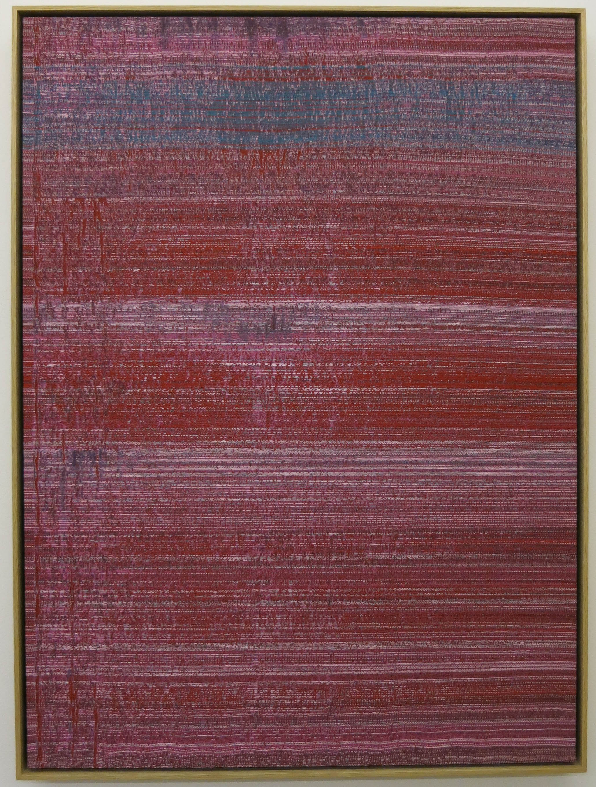 From sounds recorded at a textile factory in Bally, PA and computer data sites, Mika Tajima and a textile designer worked to translate sound waves into visual patterns. Old technology – the mill uses jacquard looms (a punch-card system invented in the early 1800s) – meets new in a beautiful abstract textile that looks like a screen interrupted by interference. (At 11R Gallery on the Lower East Side through March 13th).
