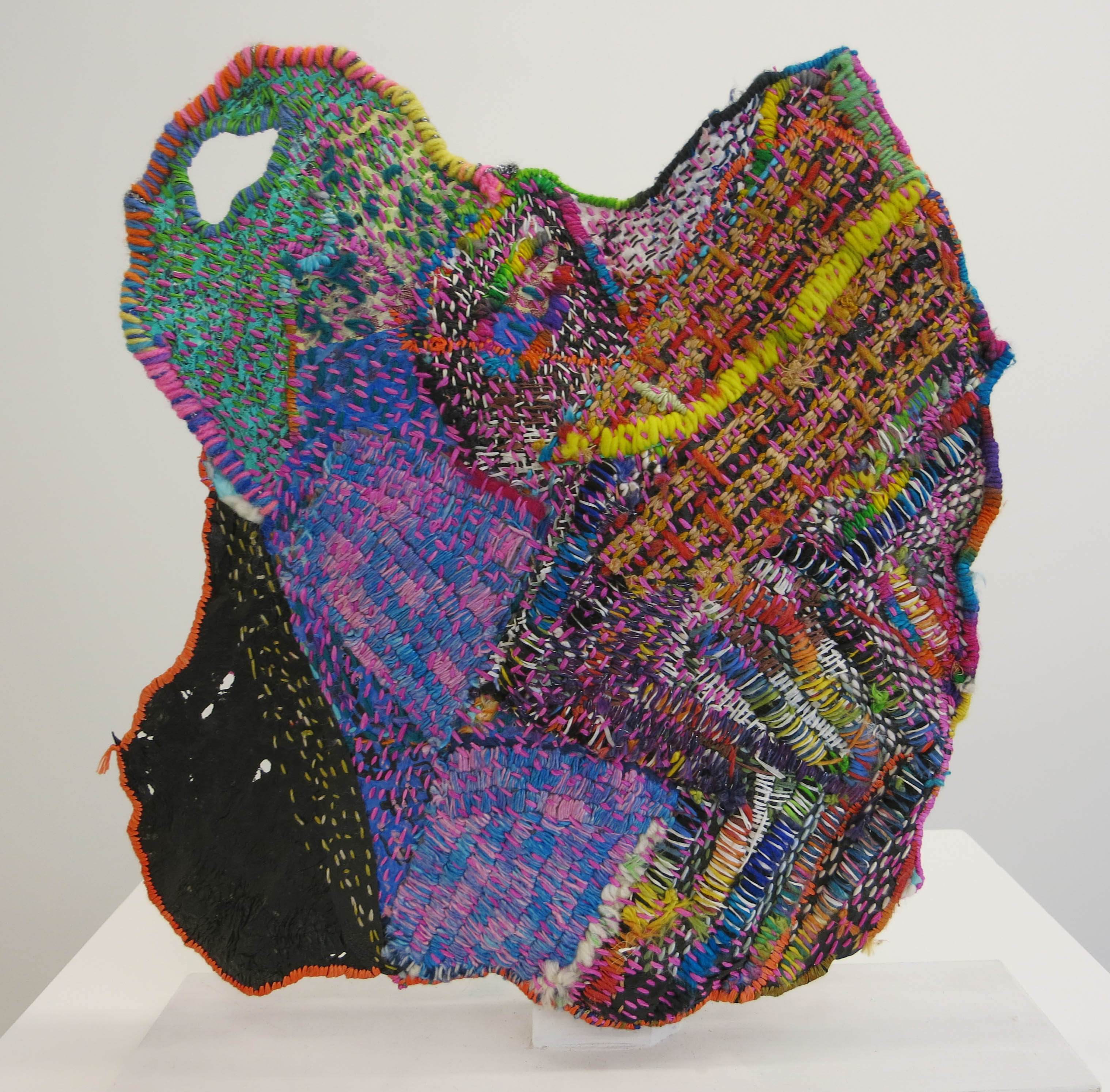 New York artist Josh Blackwell morphs a plastic carrier bag into a wonder of colorful stitching in a free-standing sculpture that’s a poster child for reuse and recycling. (At 11R on the Lower East Side through June 5th).