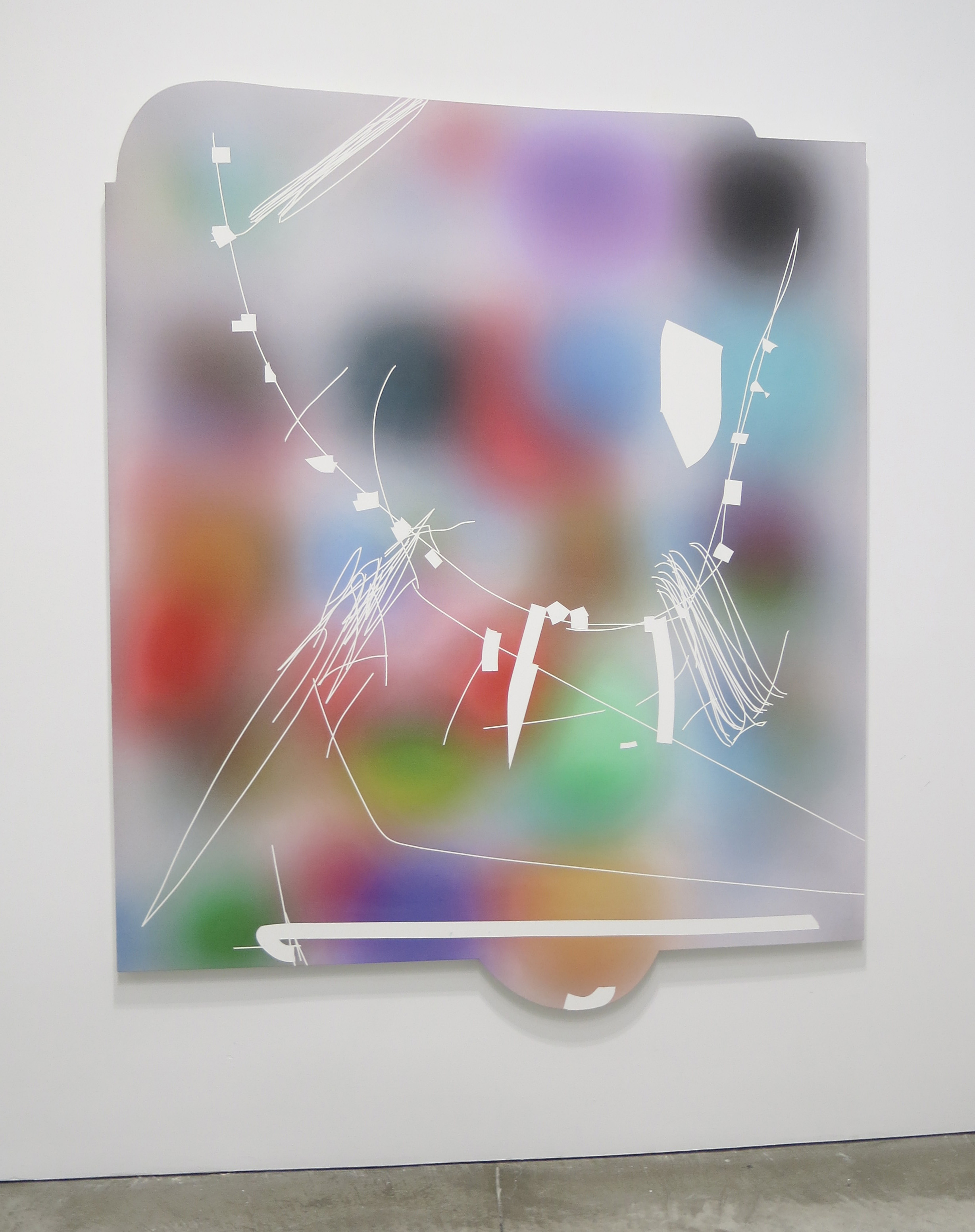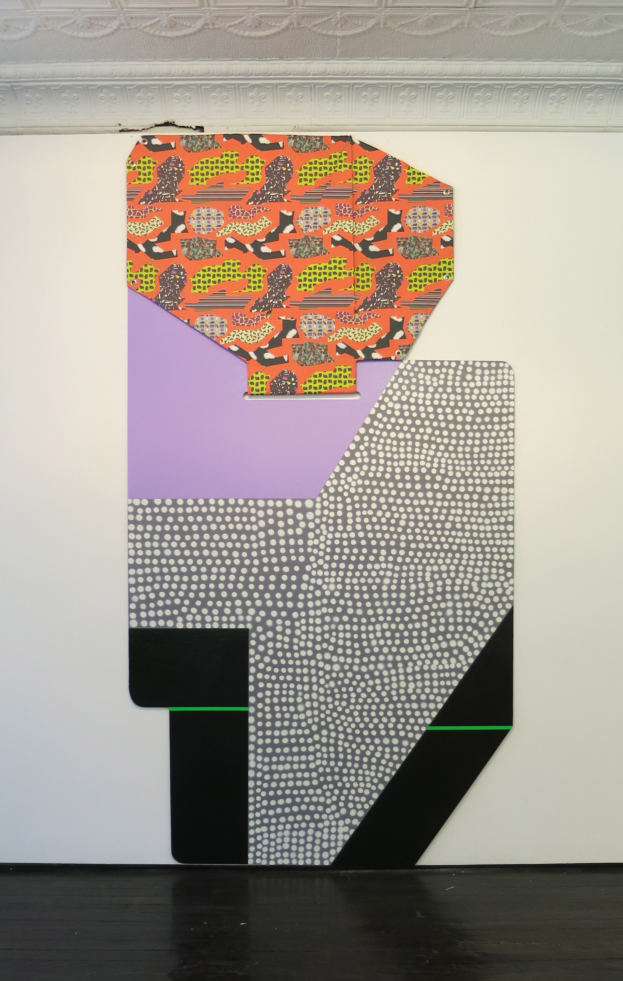 Ruth Root, Untitled, fabric, Plexiglas, enamel paint and spray paint, 116 x 61 inches, 2015.