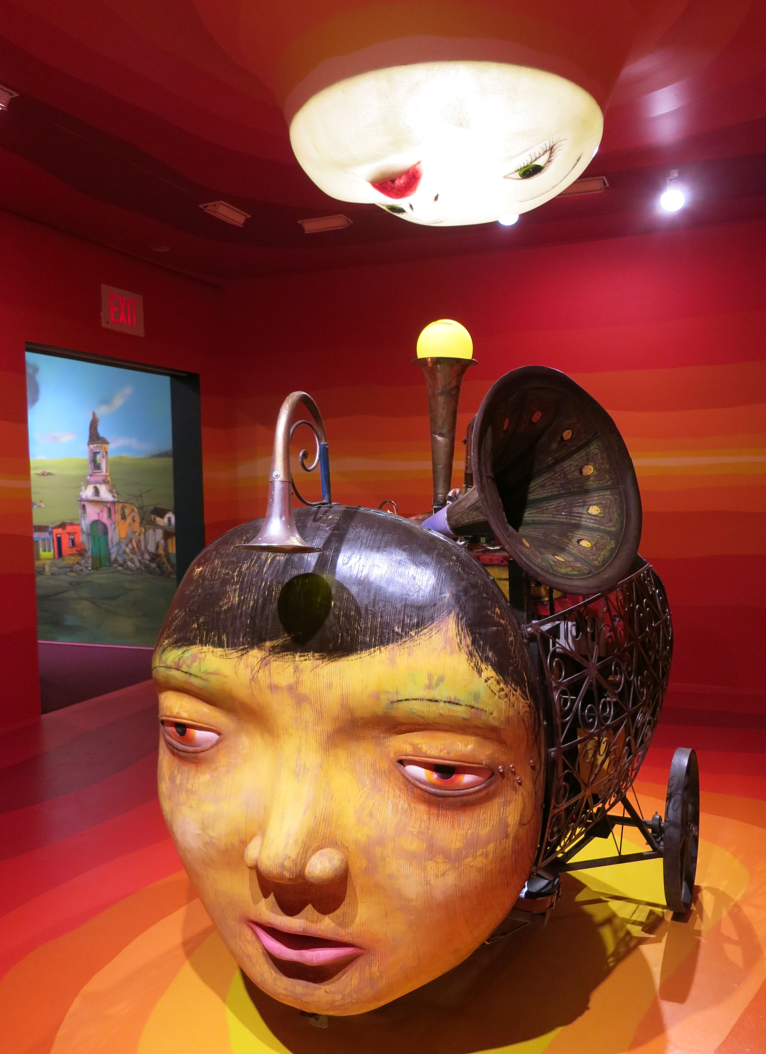 OSGEMEOS, O Beijo (The Kiss), musical instruments, mechanical and electrical equipment, wood, metal, steel and fiberglass resin, 90.55 x 57.09 x 70.87 inches, 2015-16.