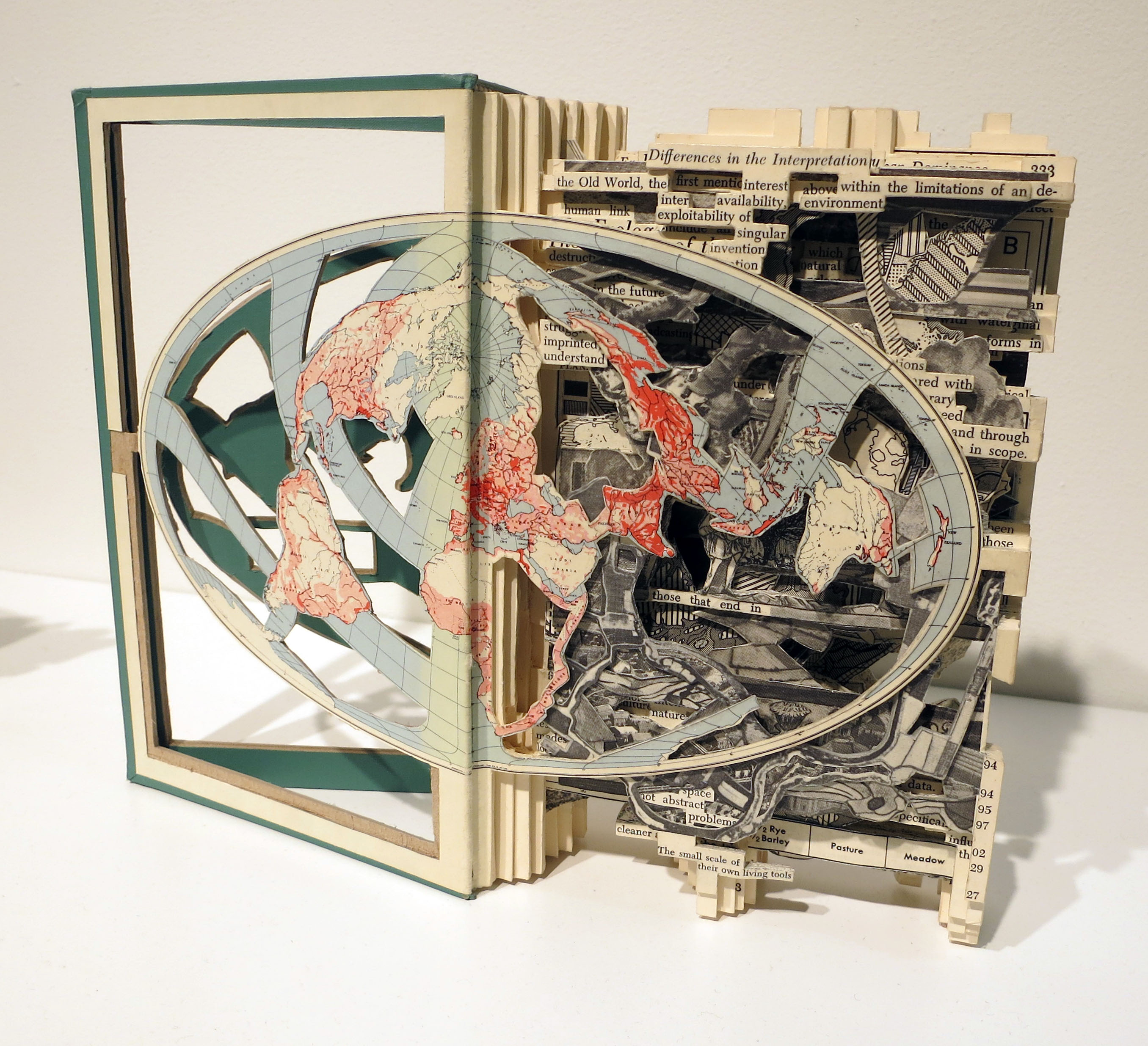 Brian Dettmer, Role Changing Face of Earth, hardcover book, acrylic varnish, 9 ¼ x 12 x 3 inches, 2016.