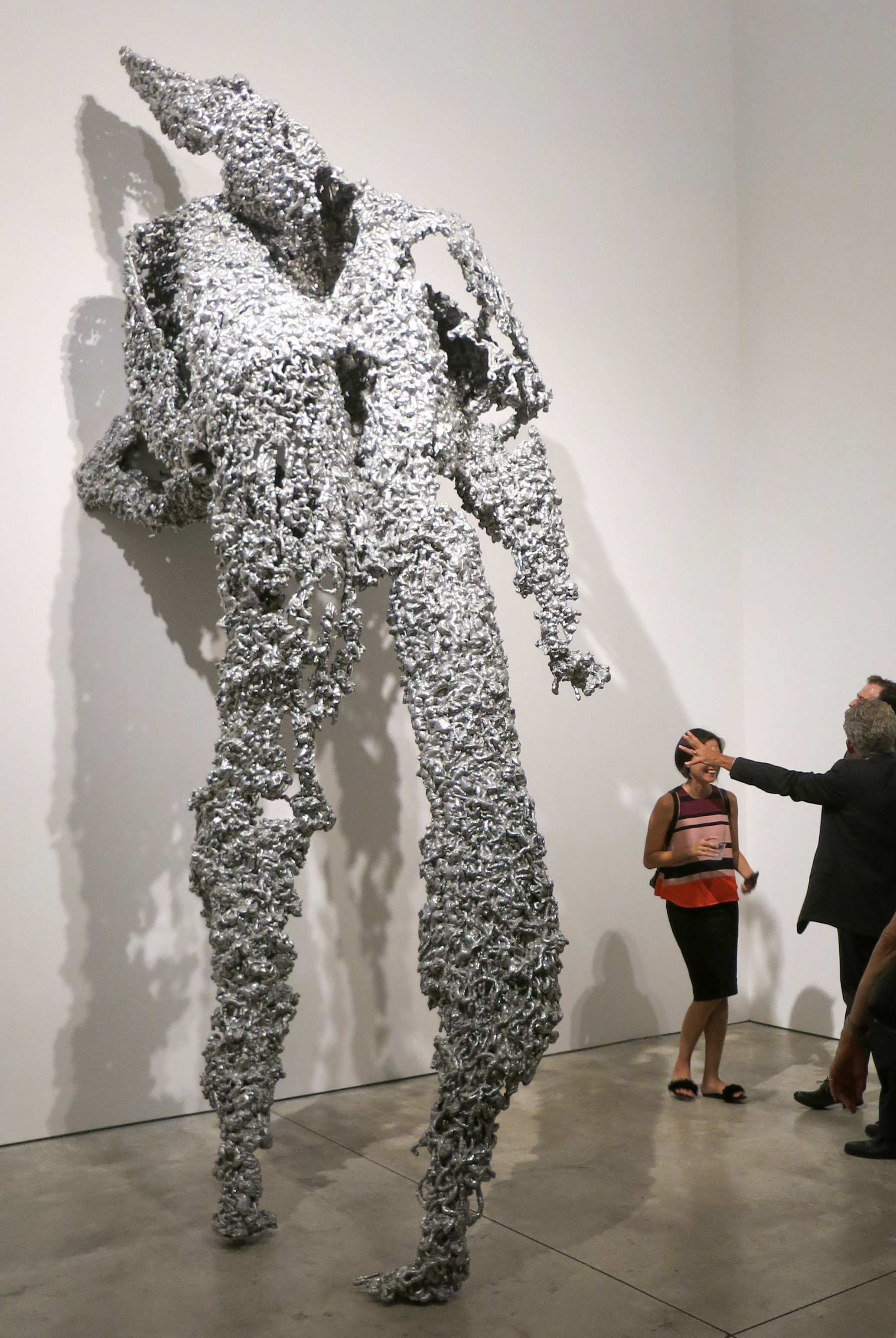 At over fourteen feet high, Lynda Benglis’ towering anthropomorph dominates her show of recent sculpture at Cheim & Read Gallery. Created by squirting spray foam onto chicken wire and casting the result in aluminum, its fragmentary quality makes it appear both imposing and fragile. (In Chelsea through Oct 22nd).