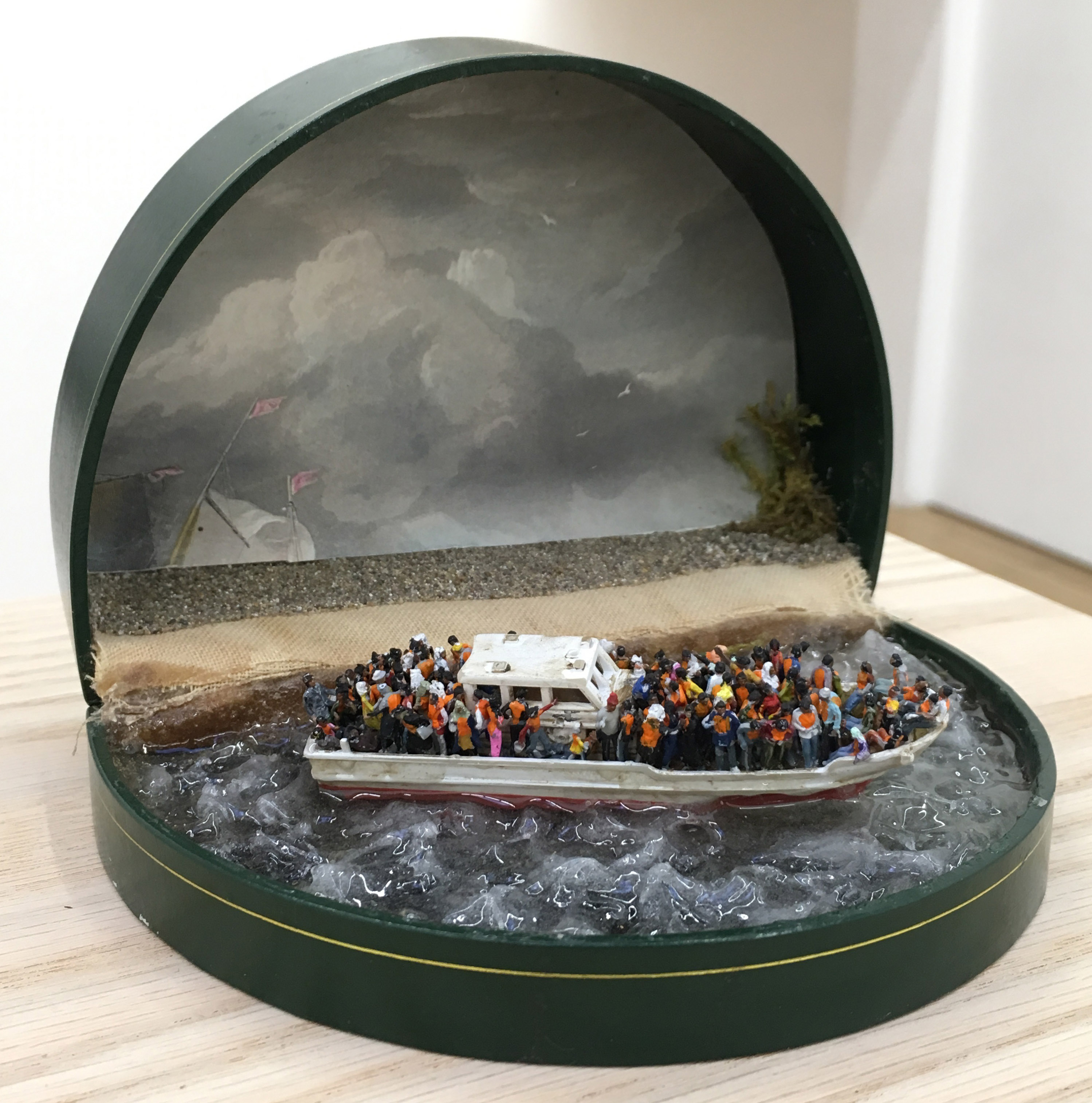Curtis Talwst Santiago, Deluge VII, mixed media diorama in reclaimed jewelry box, 6 x 4 x 4 ½ inches, 2016.