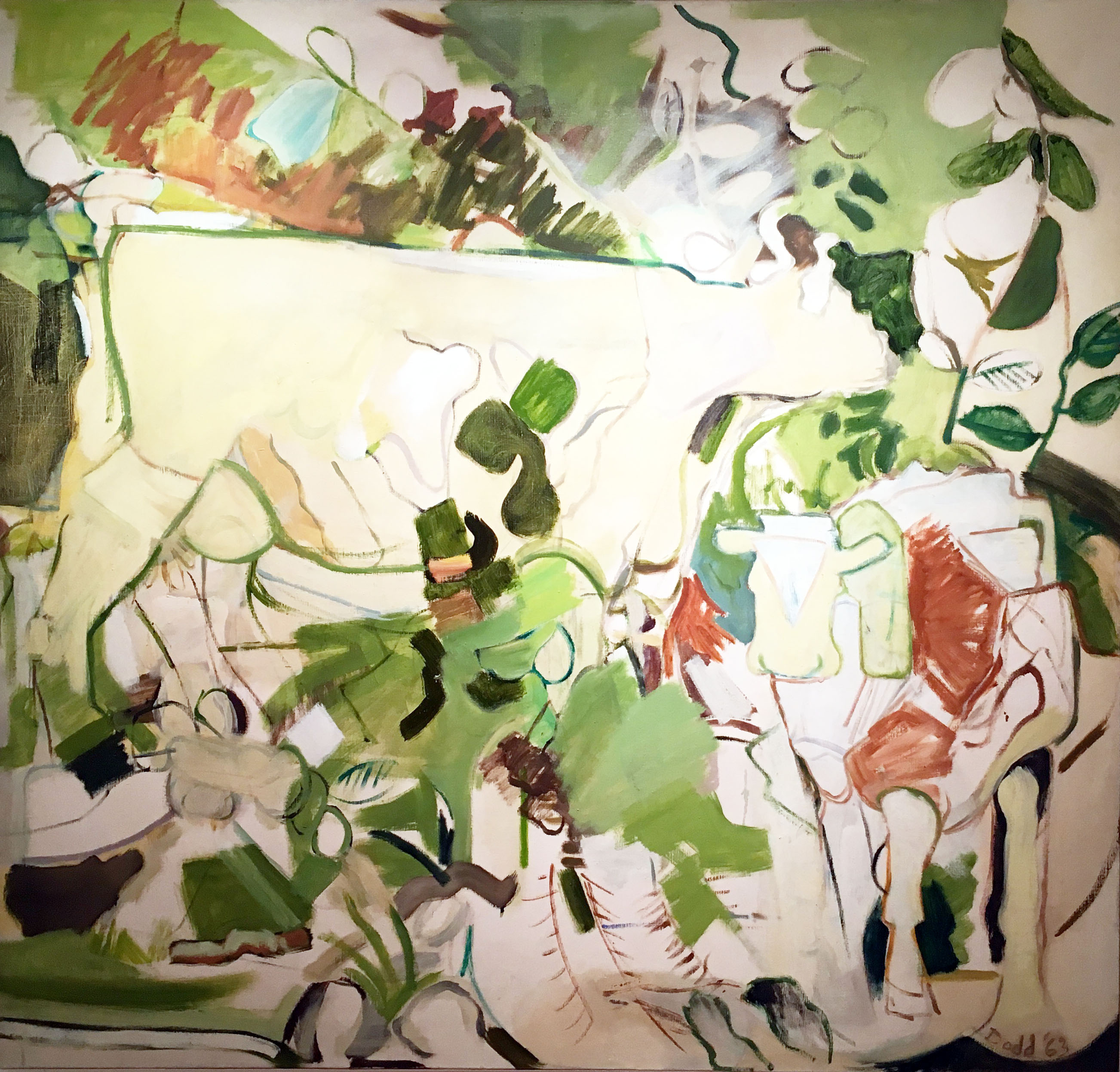 Lois Dodd, Cows, oil on linen, 72 x 76 inches, 1963.