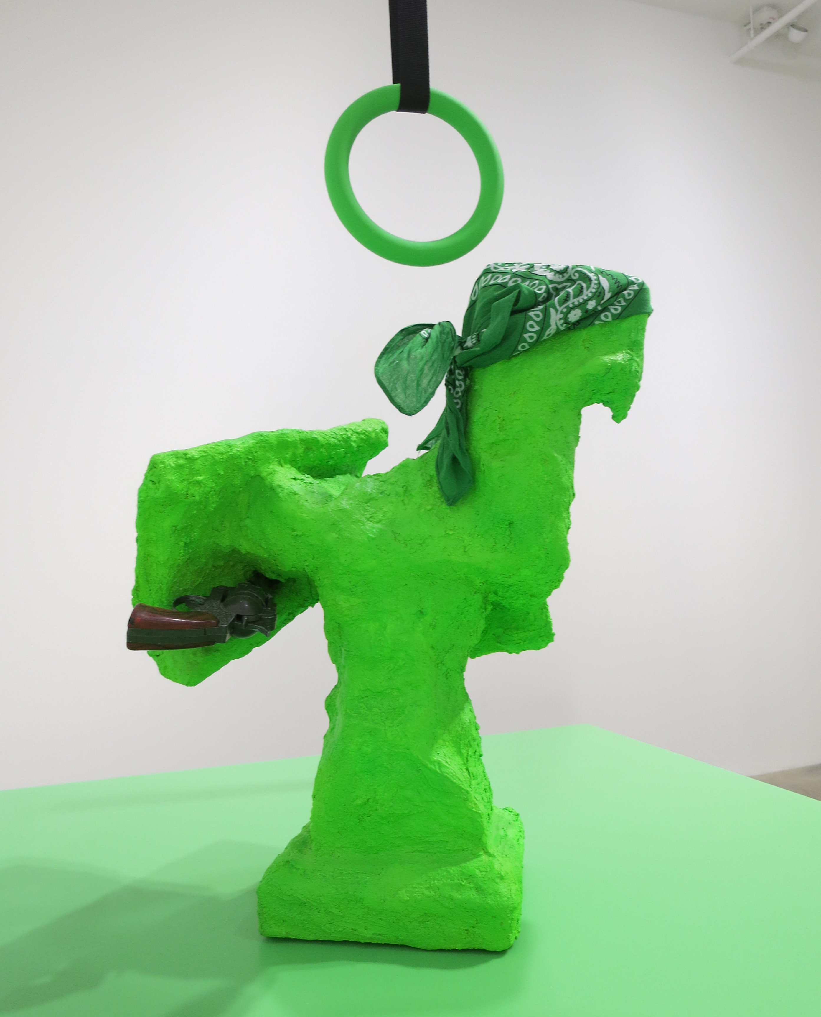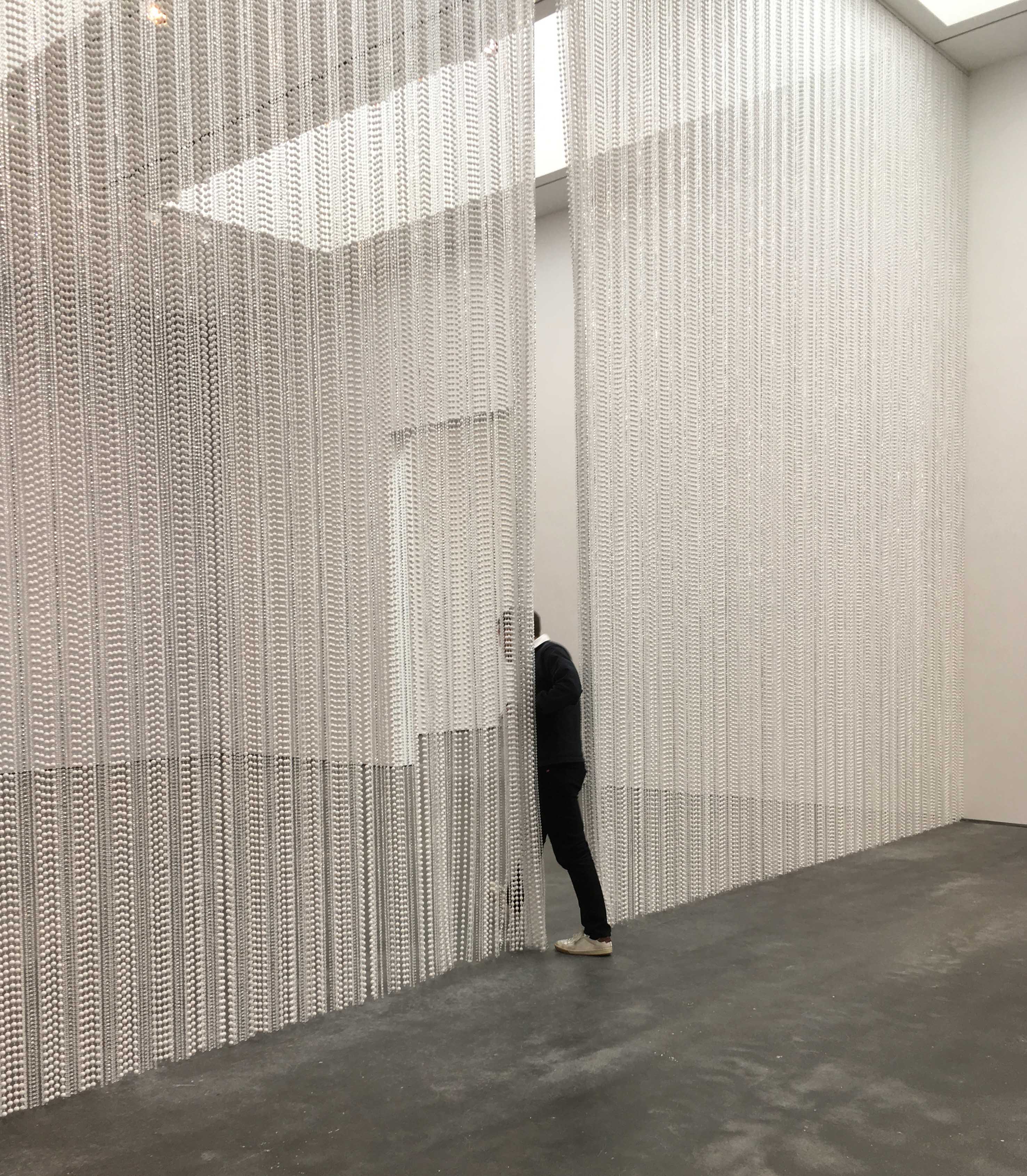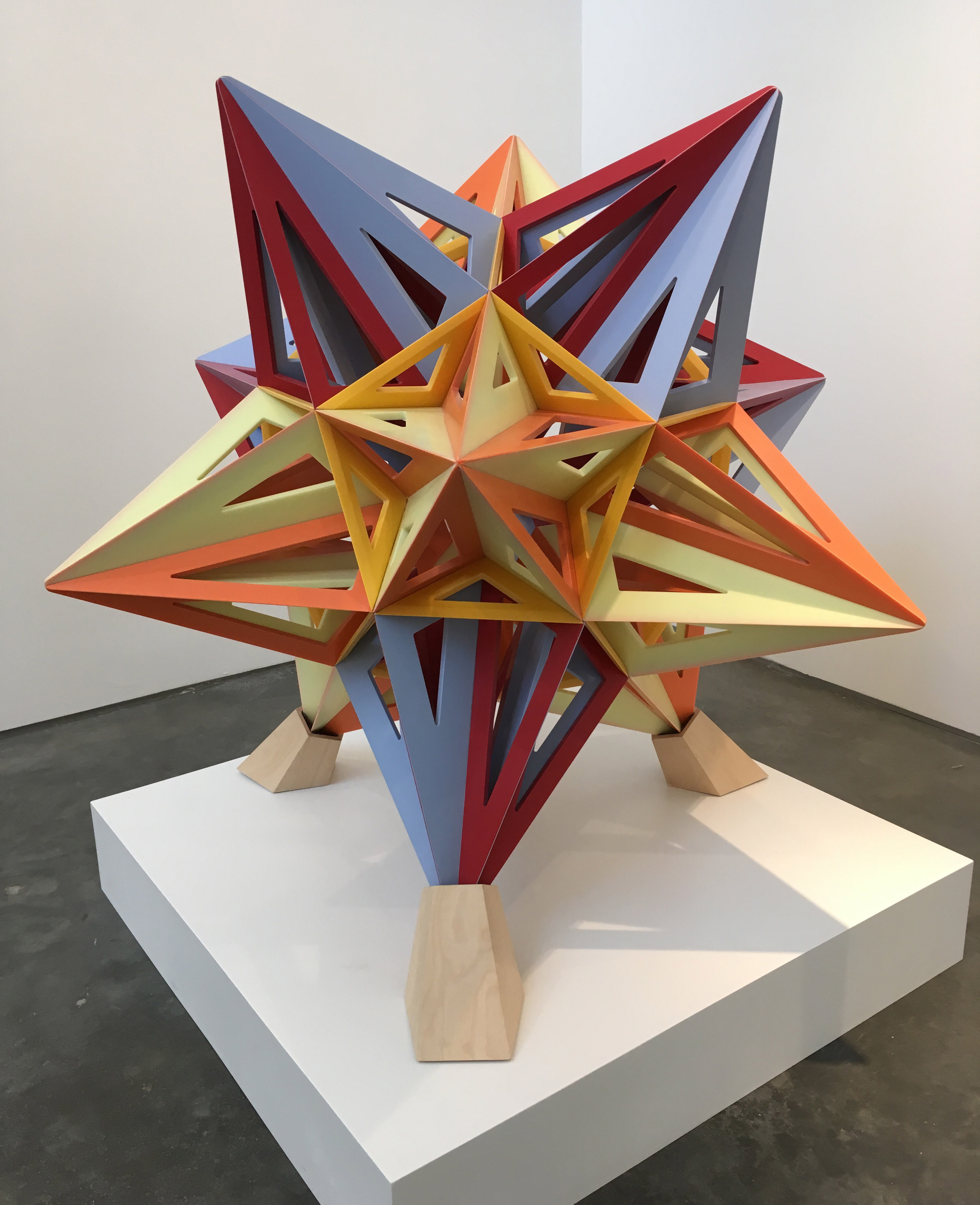 From wood to polycarbonate and from the Whitney’s outdoor sculpture terrace to the museum’s gift shop, Frank Stella is bent on examining star shapes in endless materials and sizes. At Marianne Boesky Gallery in Chelsea, this ‘Corian Star’ is in the medium size range for Stella (at just under four feet tall), but its color scheme and unlikely material makes it an immediate draw. (On view through June 17th).