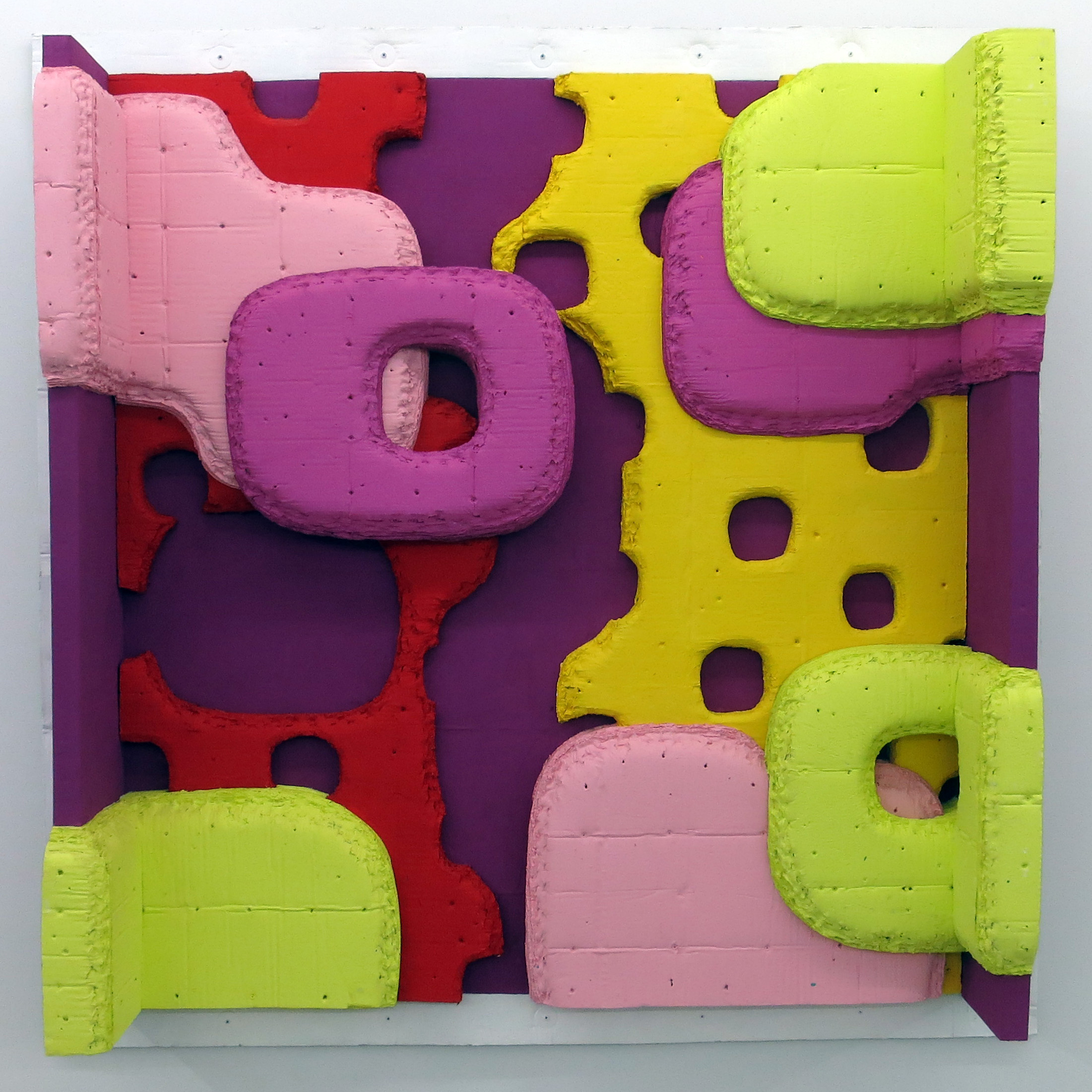 Guy Goodwin, Flowers in the Grotto, acrylic and tempera on cardboard, 68 x 68.5 x 13.25 inches, 2017.