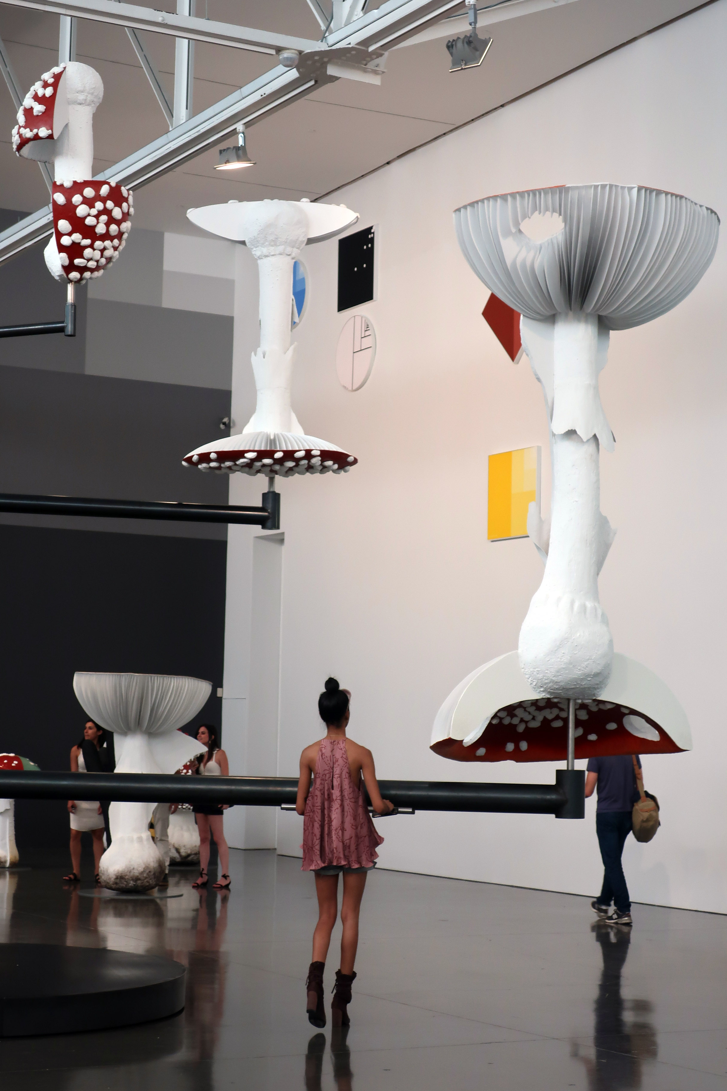 Seven hallucinogenic mushroom replica spin like a model of the solar system in Carsten Holler’s ‘Flying Mushrooms’ sculpture at Gagosian Gallery, pointing to out-of-body experience, experienced in person in the gallery. Holler’s first show since 2011 (when he installed a slide and sensory deprivation chambers at the New Museum), this interactive exhibition is sure to be another crowd pleaser. (On view on 24th Street in Chelsea through August 8th).
