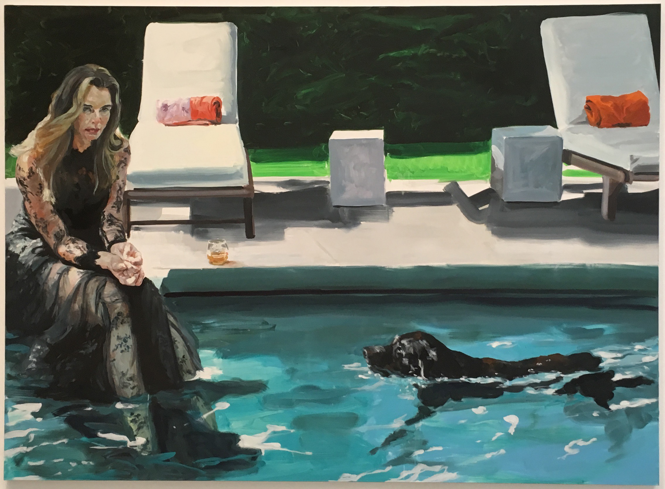 Though the pool is enticing, this isn’t a tranquil summer scene. Eric Fischl’s ‘Daddy’s Gone, Girl’ suggests that the woman in the voluminous black dress is in mourning for an absent father and maybe a little unmoored. As an update on Fischl’s well-known 1984 painting Daddy’s Girl, it’s a meditation on loss and isolation. (At Skarstedt’s Chelsea location through June 24th).
