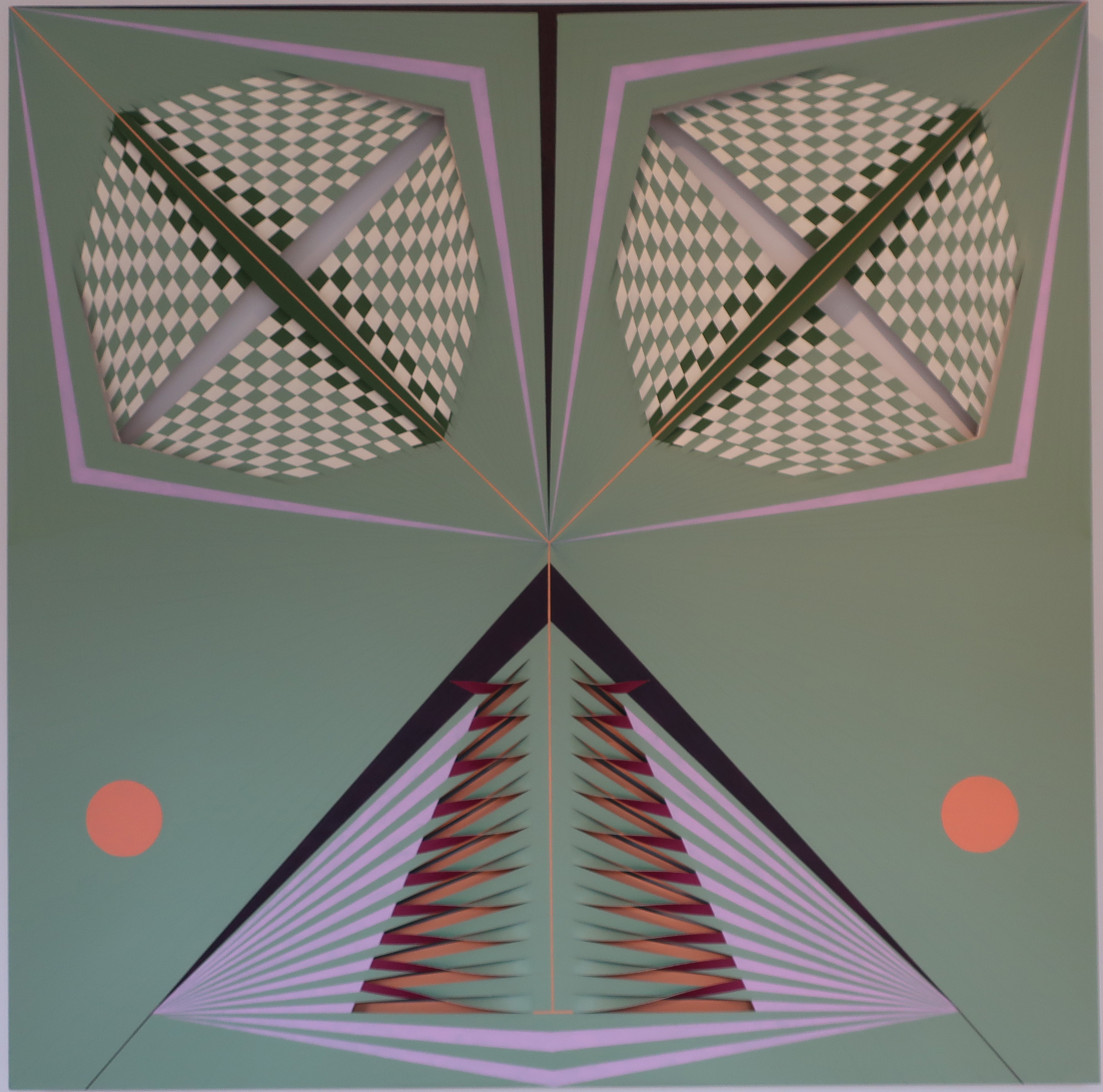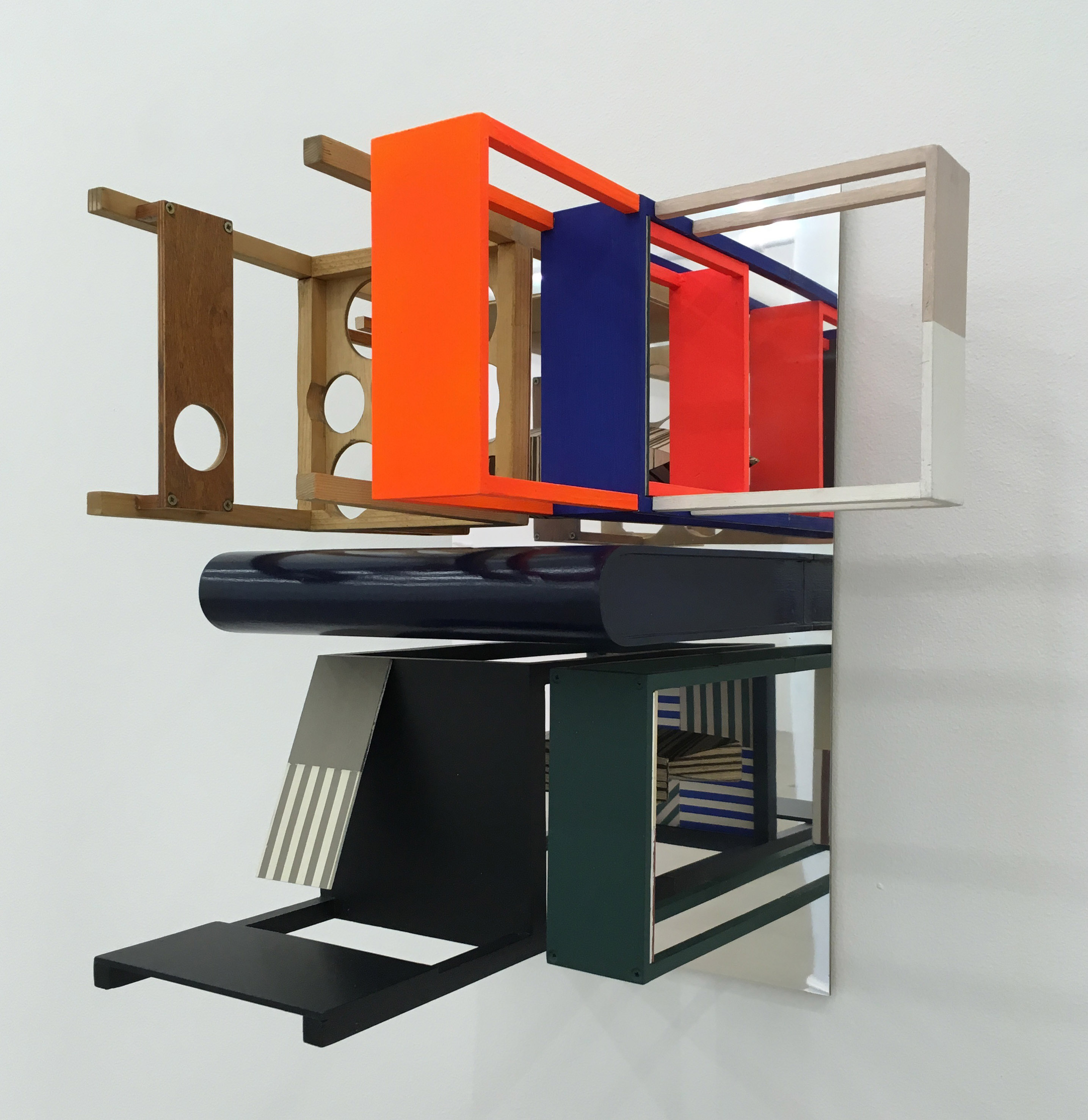 Nahum Tevet, Double Mirror (SLDB), acrylic and industrial painting on wood, veneer, metallic mirror, 19 5/8 x 16 ½ x 13 3/8 inches, 2015.