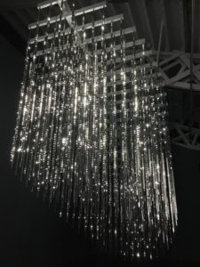 Leo Villareal’s light sculptures have transformed the San Francisco Bay Bridge, the walkway between buildings at DC’s National Gallery and many other high profile sites. On a smaller scale but with no less mesmerizing impact, Villareal has transformed Pace Gallery’s 24th Street location with hanging stainless steel bars displaying an ever-changing combination of LED lights. (On view through June 17th).