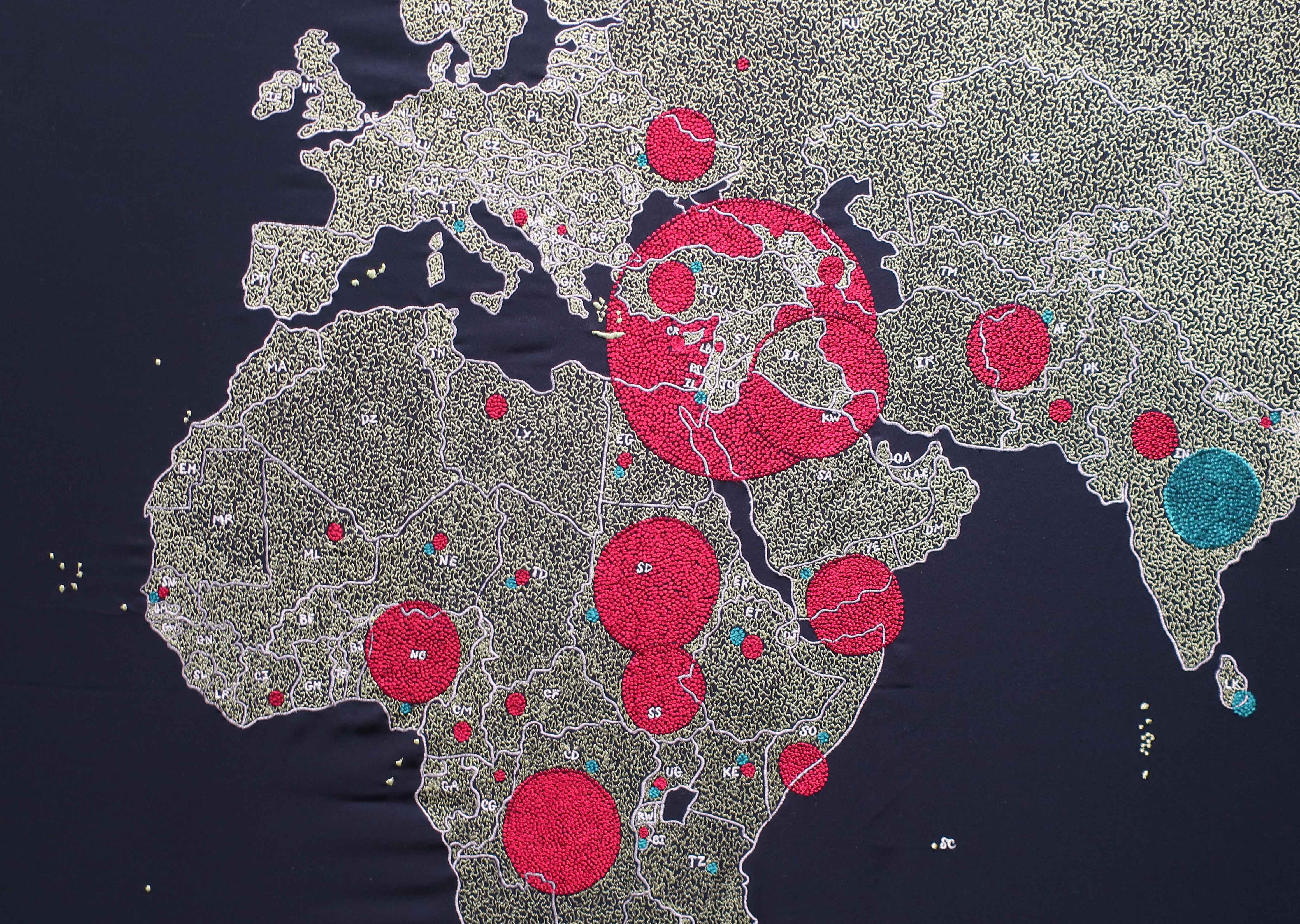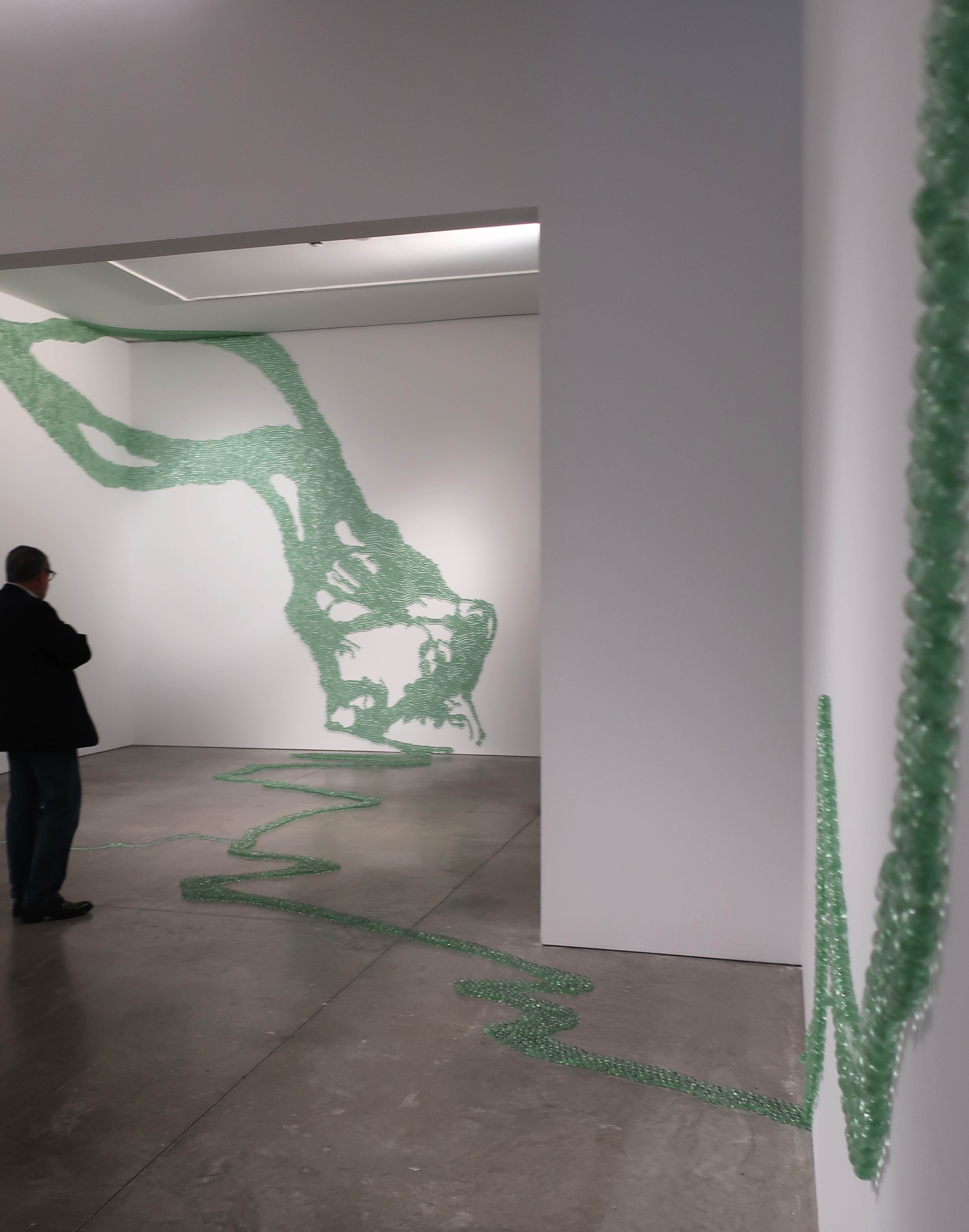 Off-the-wall artwork isn’t unusual on the Lower East Side, but artist Daniel Canogar’s flexible LED screen-sculptures give new meaning to the phrase. In a solo show at Bitforms Gallery, Canogar employs grids of LEDS on flexible backing to display undulating patterns, derived from real-time environmental data, from temperature to seismic activity. (On the Lower East Side through Oct 14th).