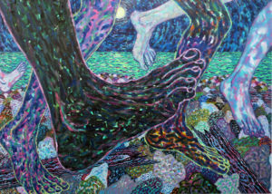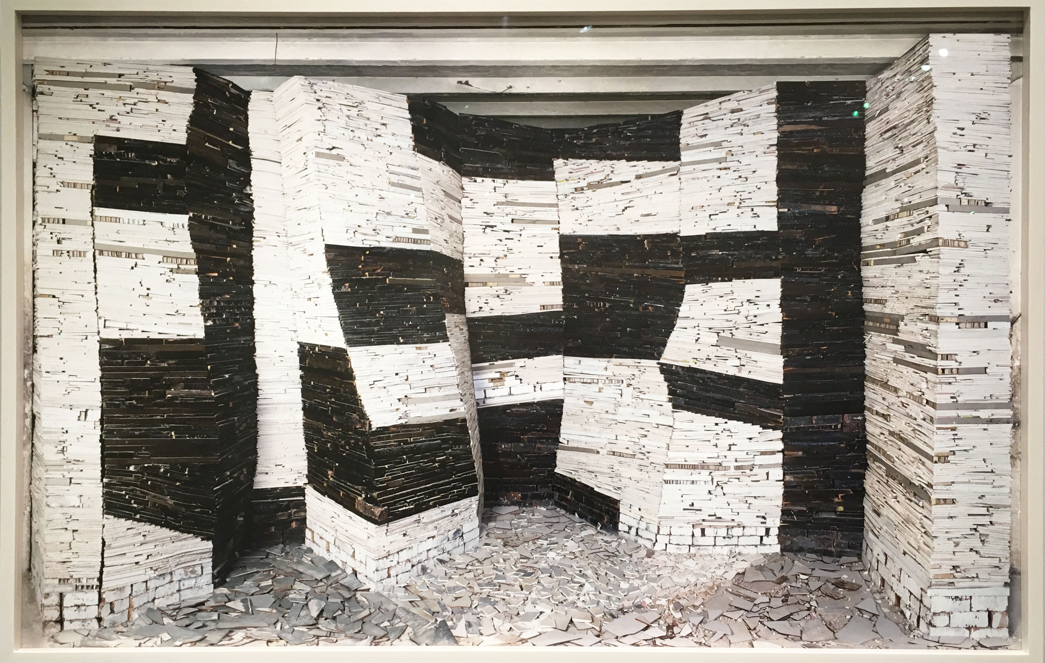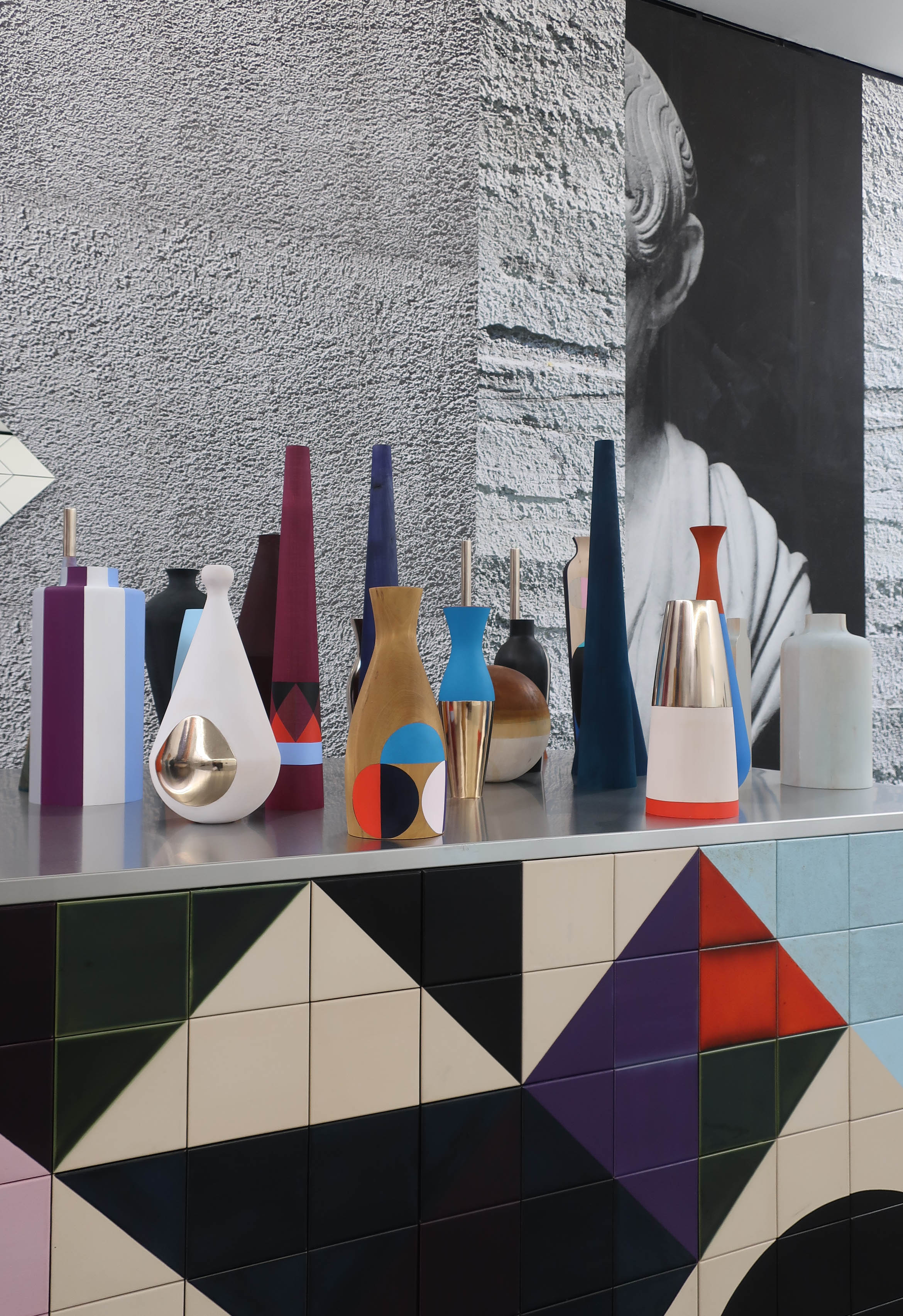 Berlin-based artist Claudia Wieser takes the 1976 BBC drama ‘I, Claudius’ as inspiration for a gorgeous exhibition featuring wallpaper printed with towering busts from antiquity and a series of refined painted vessels atop a large ceramic tiled pedestal. Rather than tell a story or suggest particular meanings, Wieser evokes elegance and opulence using low-brow materials like wood and mirror-polished steel, perhaps a parallel to politically corrupt Roman rulers whose culture non-the-less produced prized artwork. (On view at Marianne Boesky Gallery in Chelsea through April 14th).