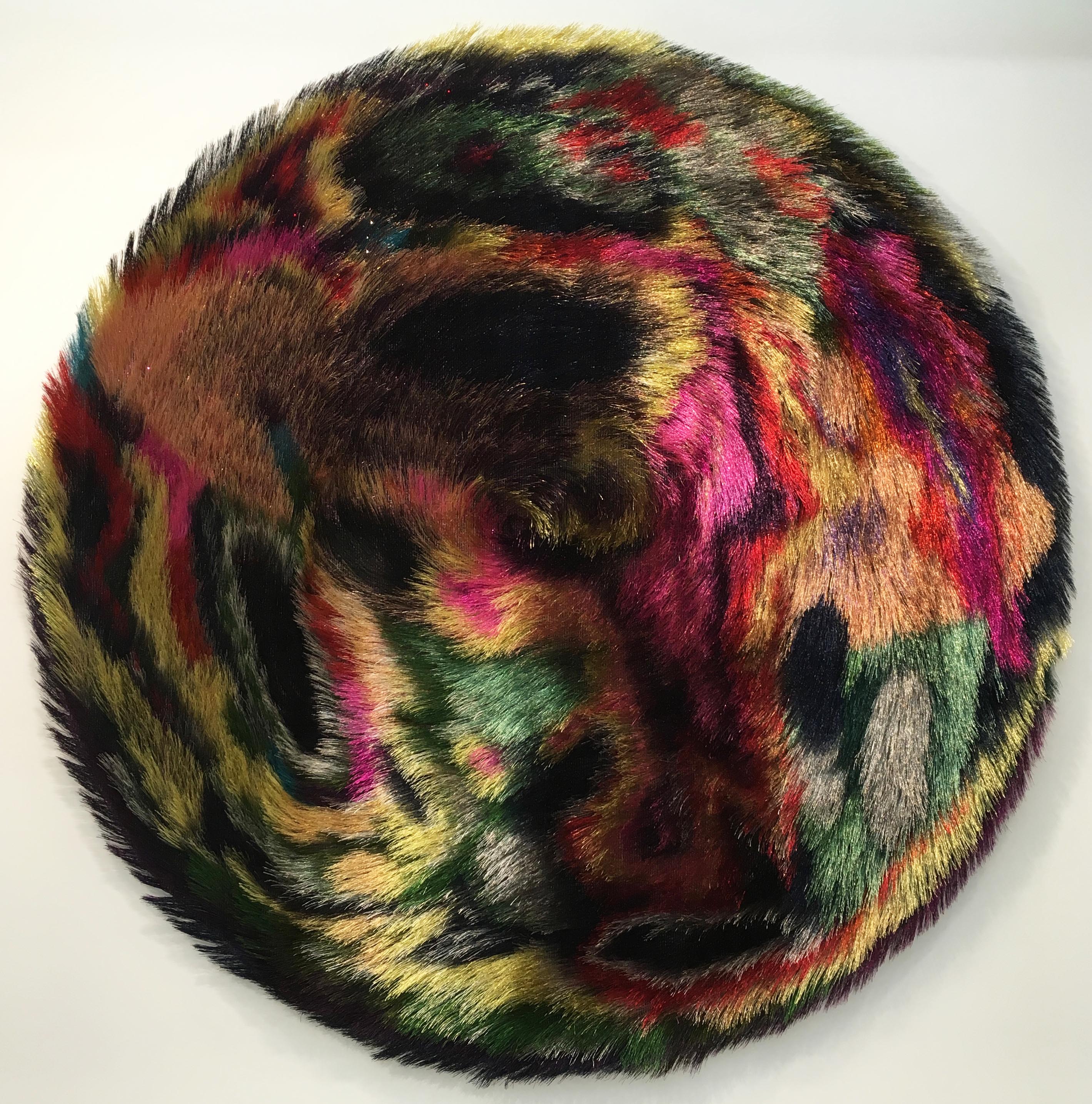 Nick Cave, Tondo, mixed media including wire, bugle beads, sequined fabric and wood, 96 inches diameter, 2018.
