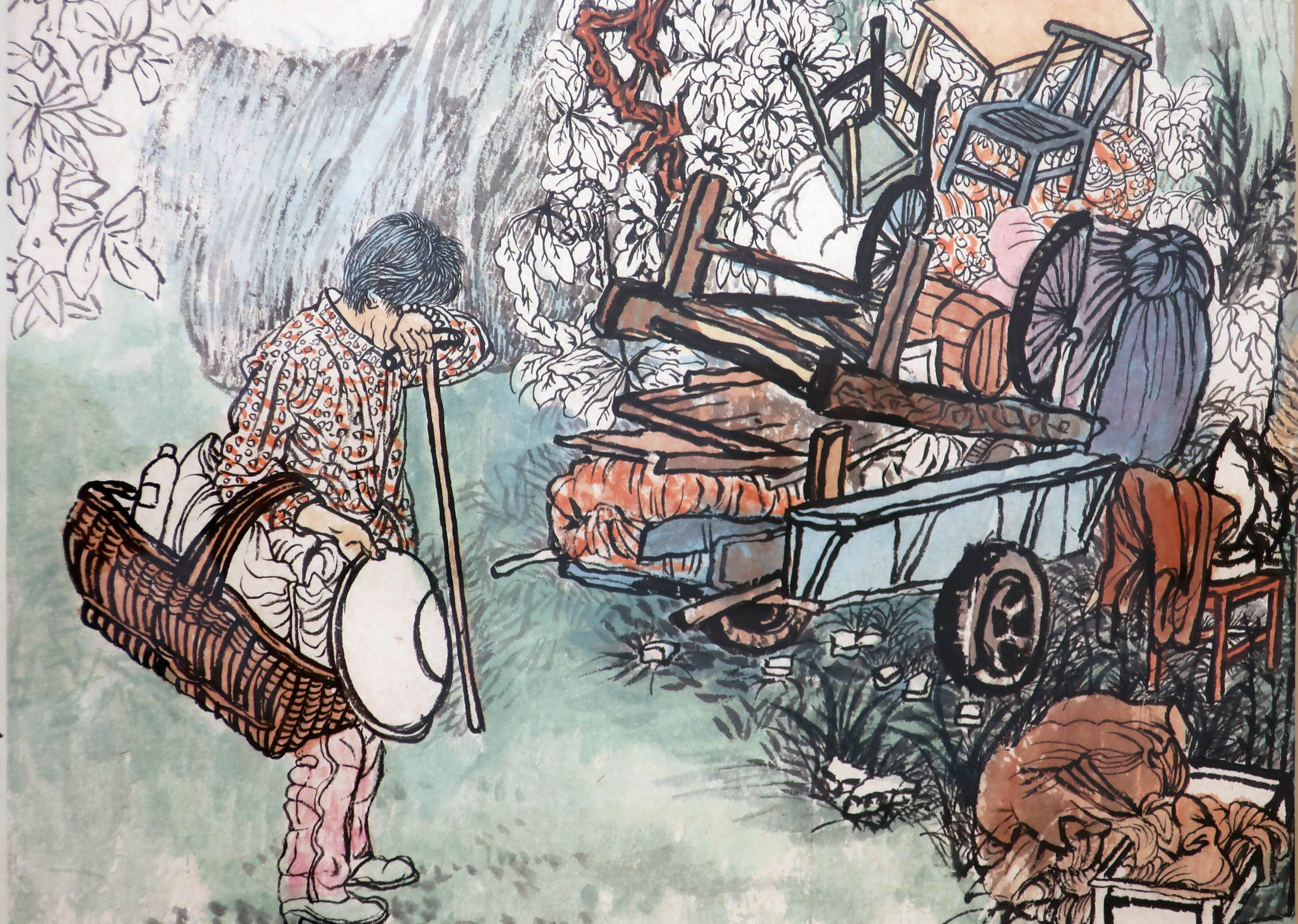 Yun-Fei Ji, detail of The Family Belongings, watercolor and ink on Yuan paper mounted on silk, 15 ½ x 26 ¼ (unframed), 2011.
