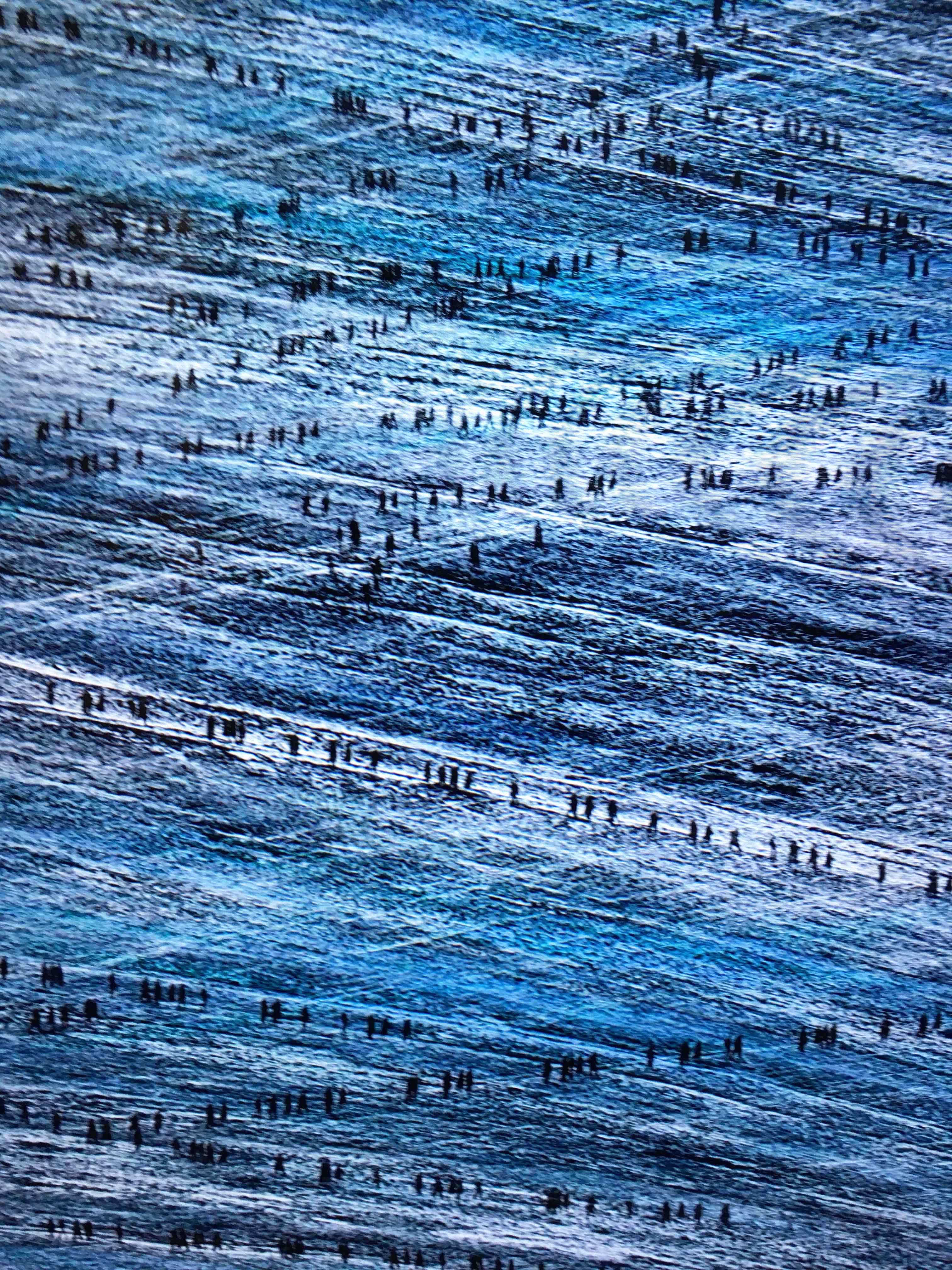 Lines of moving silhouettes endlessly crisscross rugged terrain in ‘Blue Hills,’ an arresting video at the entrance to Michal Rovner’s latest solo show at Pace Gallery. Suggesting constant migration across inhospitable land, the piece’s calm colors belie more overt alarm in several of the show’s other works, in which bodies with flashing red lights for heads or constantly waving arms sound a warning. Reflecting on the role of technology in our daily lives, Rovner muses that we are becoming ‘bar codes with DNA.’ (On view at Pace Gallery’s 25th Street location through June 29th).