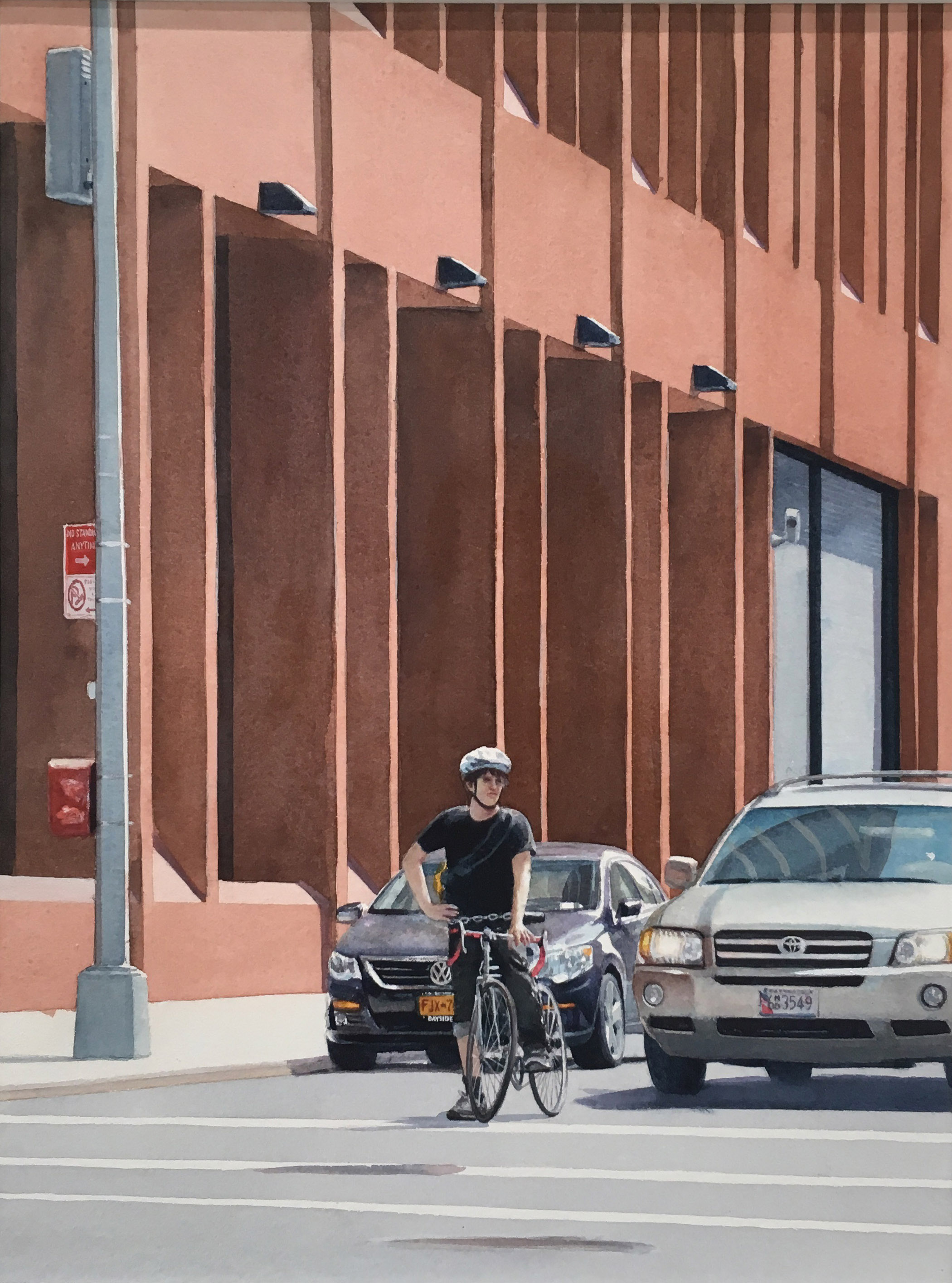 Tim Gardner, Bike Messenger, watercolor on paper, 16 x 12 inches, 2018.