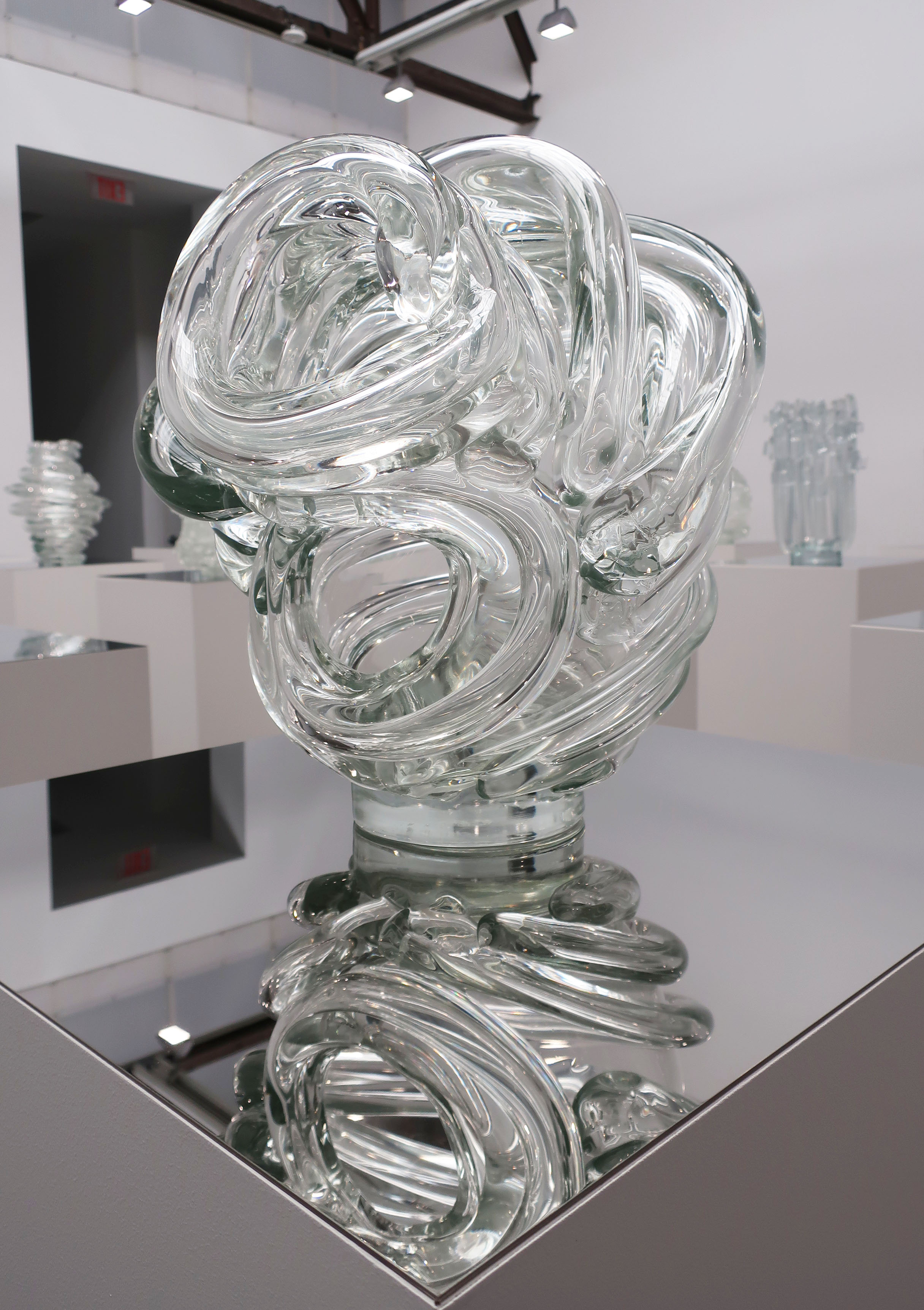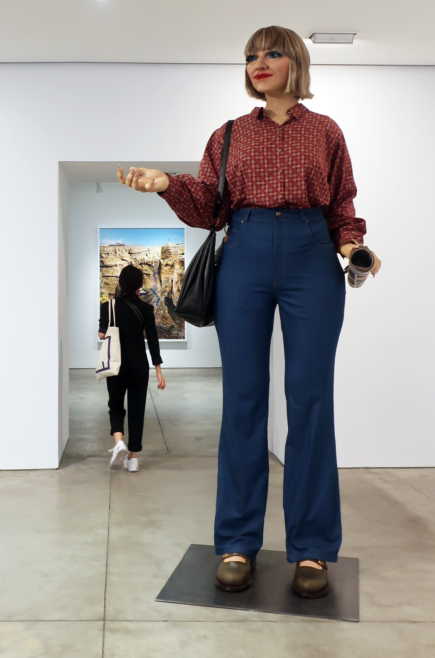 Though Berlin-based Danish artist Jeppe Hein has installed his trademark polished stainless steel panels in large outdoor spaces (notably at Brooklyn Bridge Park in 2015), 303 Gallery’s tiny back space seems uniquely suited to host an intense experience of reality for visitors who see themselves and Hein’s striped paintings cut together in thin strips. Hein has explained that his stripe paintings represent breathing in and out which sounds meditative, but in this installation is geared to quicken the senses. (On view in Chelsea through Oct 19th).