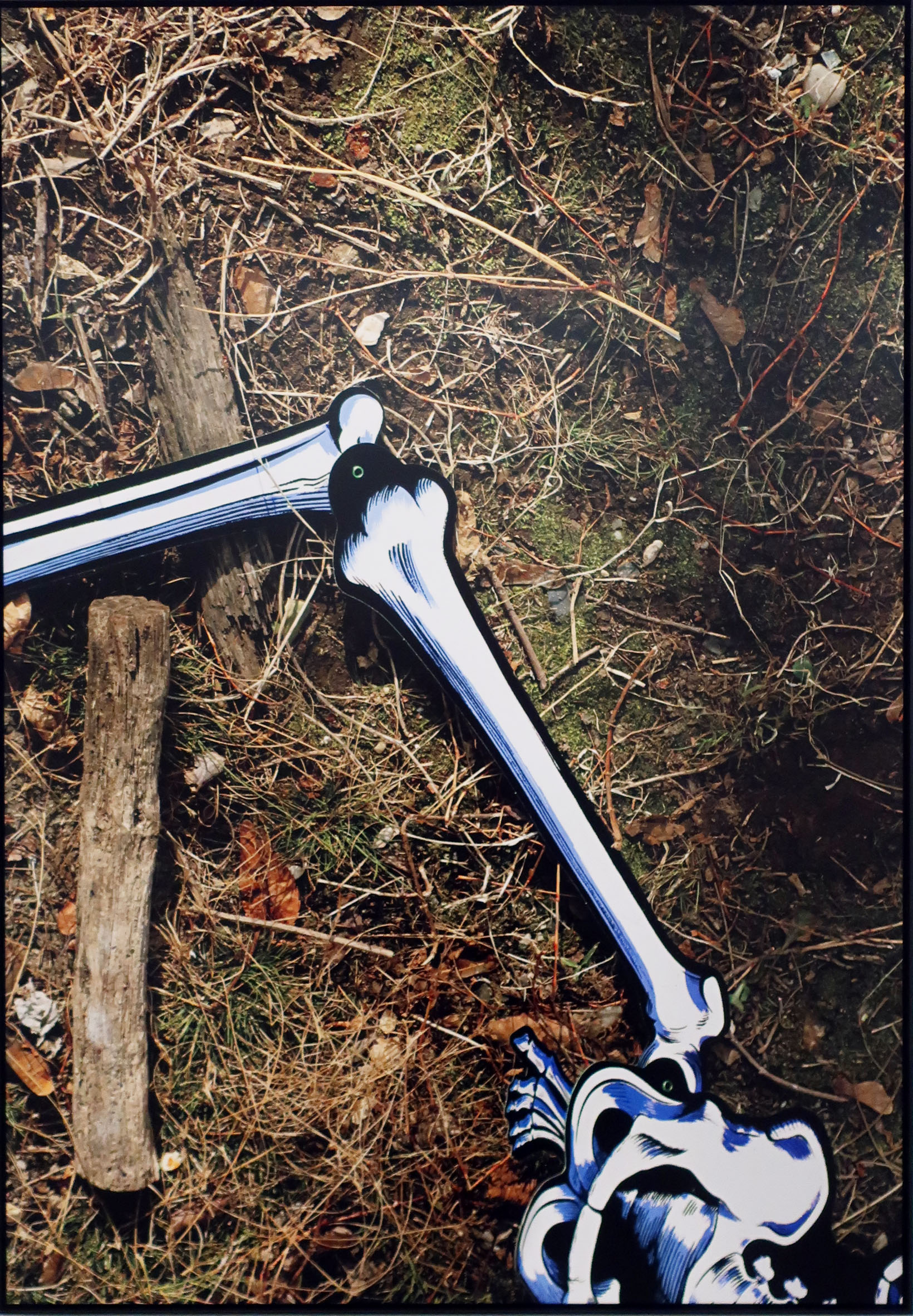 Known for adding paint, tile or other materials to the surface of her photographs, Michele Abeles shifts gears in her current show at 47 Canal, offering a surprisingly unmanipulated selection of images reflecting on macabre Halloween traditions. Most of the show’s pictures of ghoulish lawn decorations come across as straightforward documentation of bizarre but unsurprising phenomenon. A few images break through to another level, however, making an inflatable demon or a casually placed, dismembered body part freshly strange. Here, natural materials on the ground contrast sharply with the glowing white paper skeleton, creating a jarring contrast that illuminates the artificiality of the bones. (On view on the Lower East Side through Oct 3rd. Appointments are encouraged and masks and social distancing are required.)