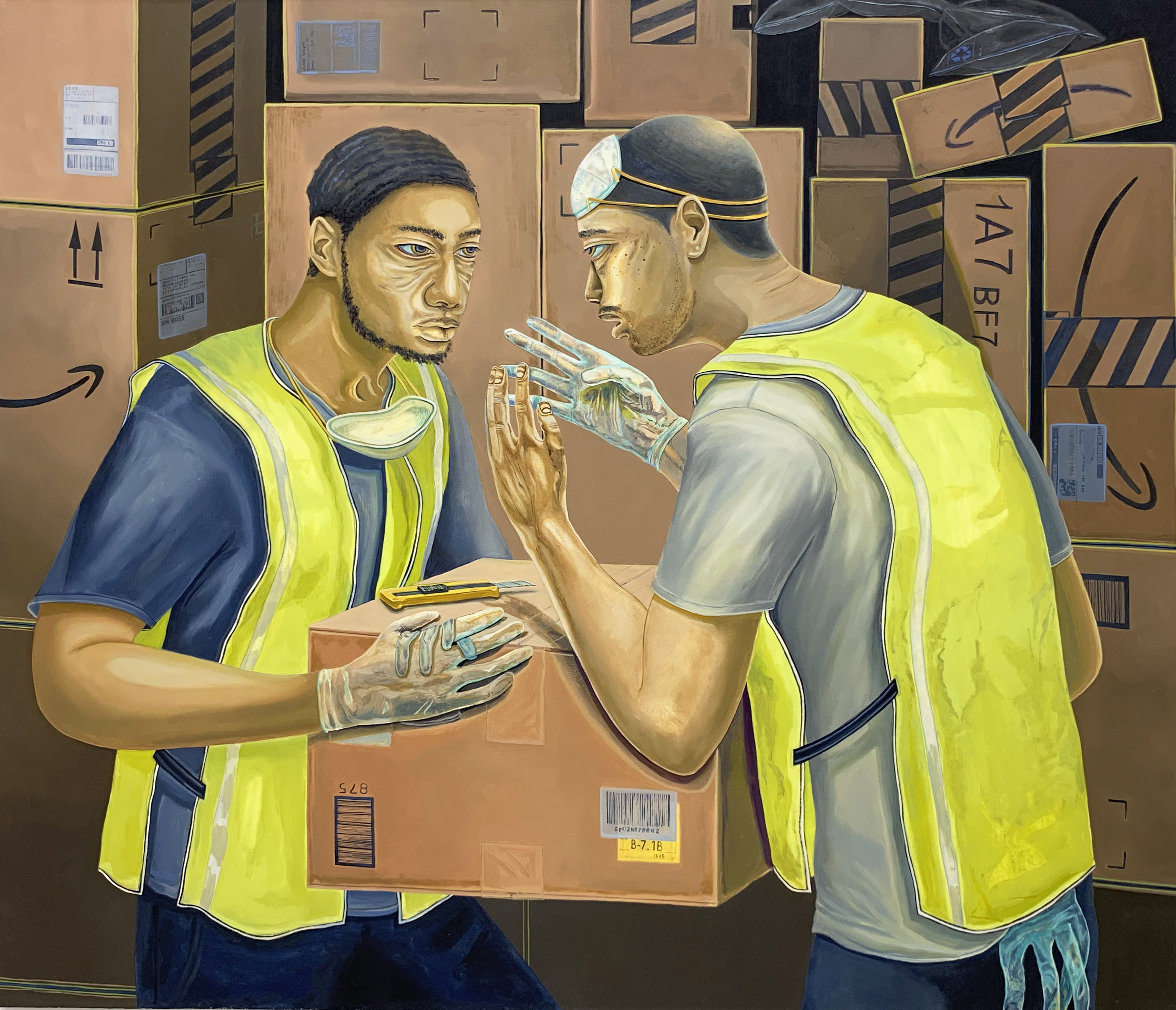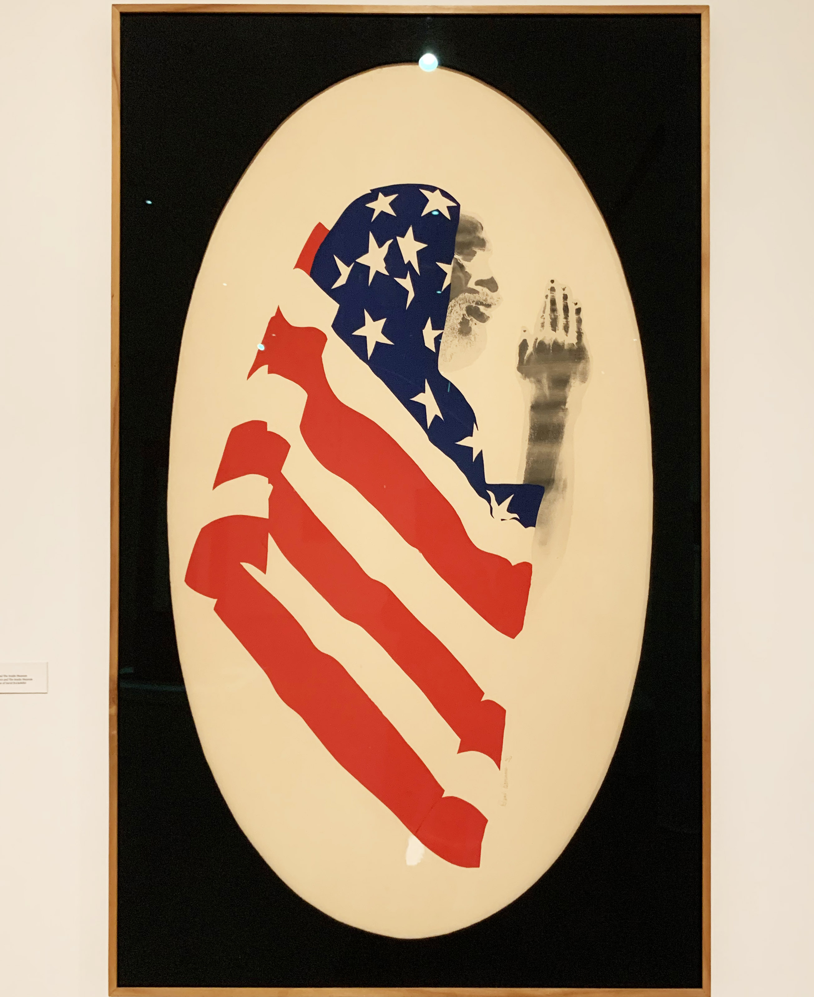 The US flag is shelter and garment for the individual depicted in this 1969 body print/screenprint by David Hammons, now on view in a powerful show of Hammons’ meticulous body prints at the Drawing Center. Made by applying oil to his skin, pressing his body to paper and applying powdered pigments, the print is one of many that incorporate the US flag to question its meaning for Black communities. (On view in SoHo through May 23rd. Appointments, masks and social distancing required. Admission charges waived).