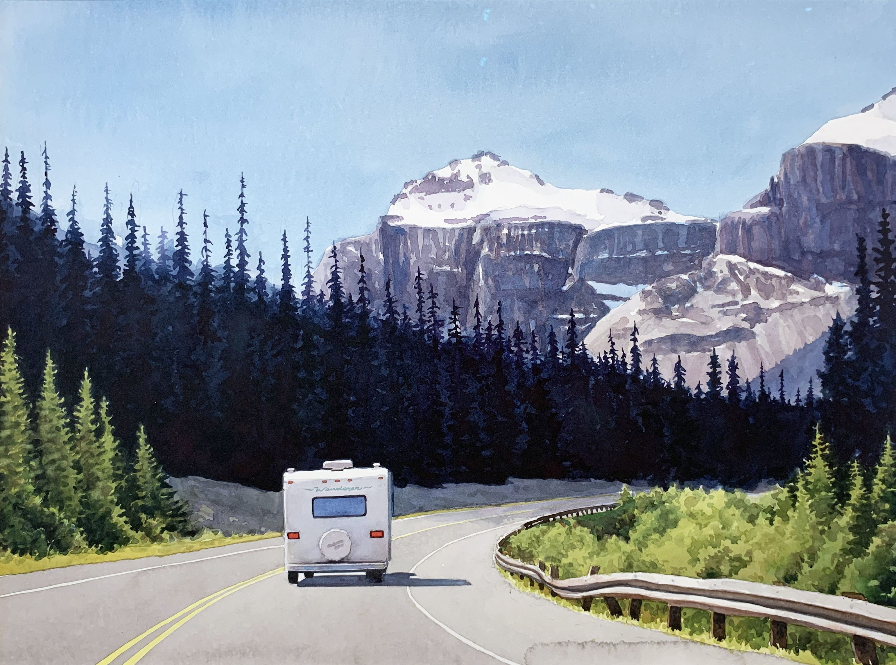 ‘Great Divide,’ the title of this watercolor by Tim Gardner at 303 Gallery, could refer to U.S. politics or the Rockies; chiefly, it taps into mythologies of the lone wanderer. German Romantic painter Caspar David Friedrich’s iconic solitary figure on a cliff’s edge comes to mind, now behind the wheel of a gas guzzler and protected by guardrails. The restorative qualities of nature, experienced particularly during the pandemic, no doubt inspired Gardner. At the same time, the complexities of contemporary relationships to nature make the image enticing and uncomfortable. (On view in Chelsea through Aug 13th).